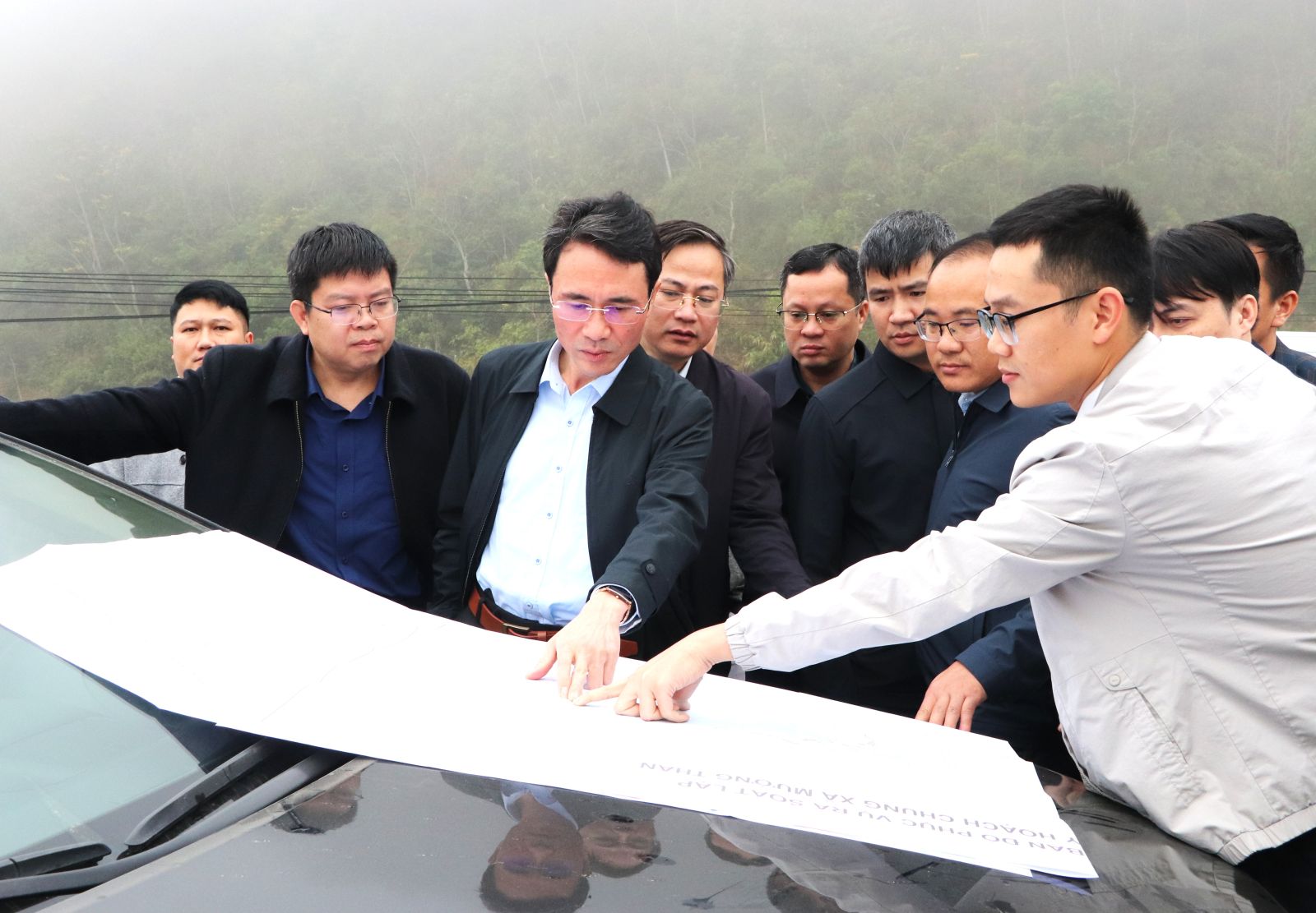 Trước khi vào làm việc, Đoàn công tác đã đi kiểm tra thực địa, xem bản đồ quy hoạch chung xã Mường Than; kiểm tra quy hoạch sắp xếp khu dân cư tại xã Than Uyên.