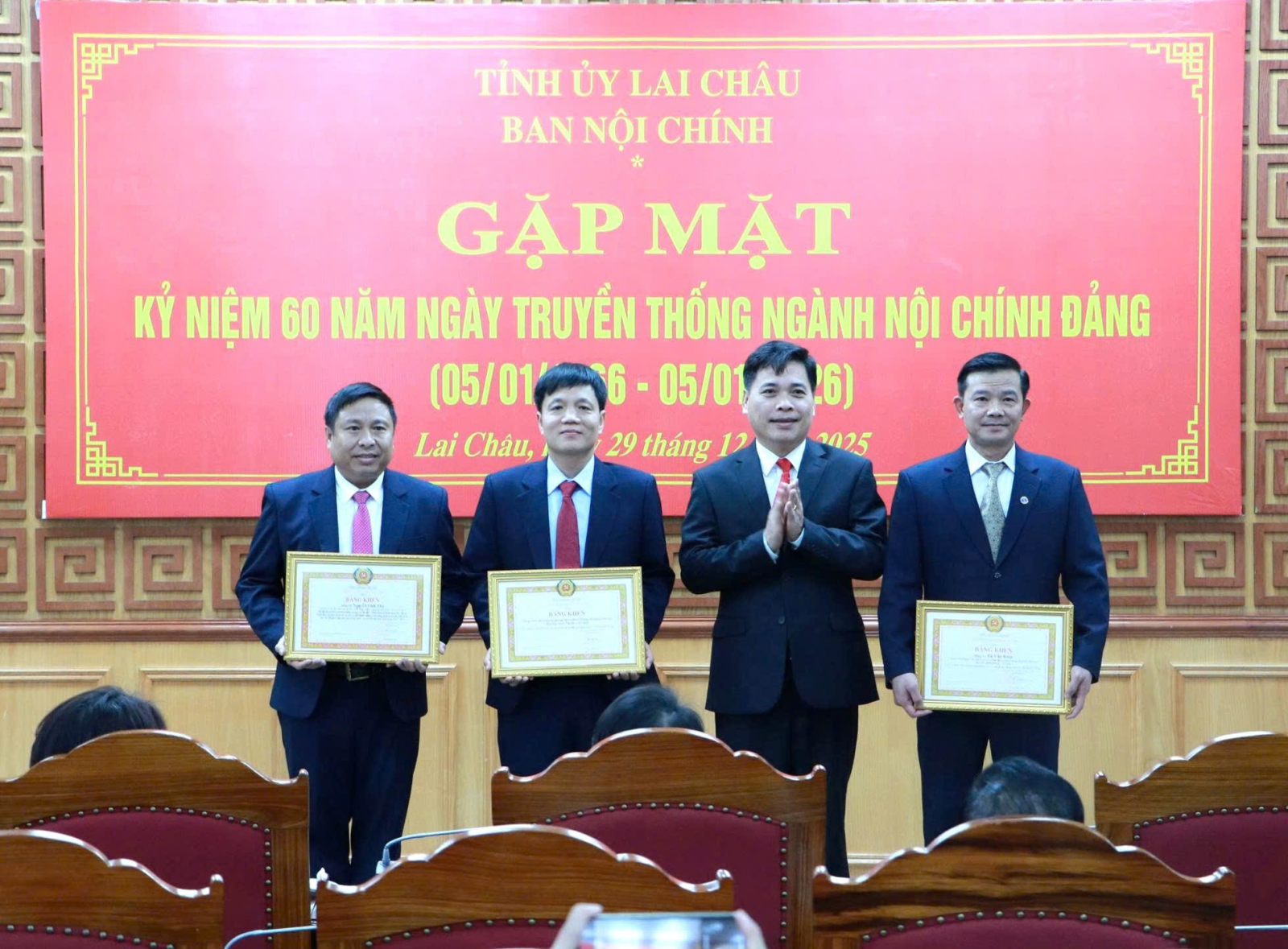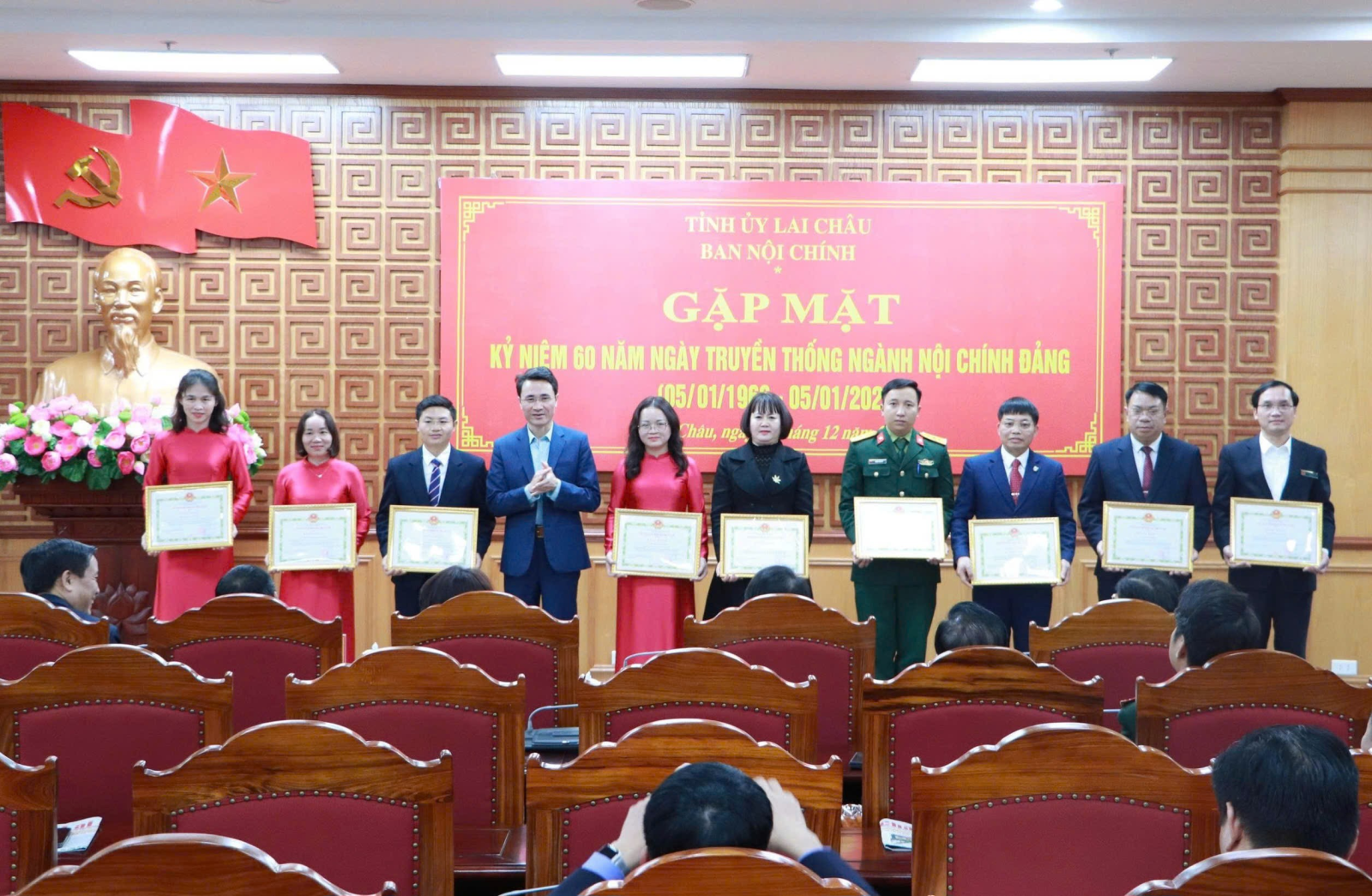 Nhân dịp này, Ban Nội chính Trung ương đã tặng Bằng khen của Ban Nội chính Trung ương cho Ban Nội chính Tỉnh ủy Lai Châu và 2 cá nhân có thành tích xuất sắc, góp phần vào sự nghiệp xây dựng ngành Nội chính Đảng; Chủ tịch UBND tỉnh Lai Châu tặng Bằng khen cho 6 tập thể và 11 cá nhân có thành tích xuất sắc trong phong trào thi đua nhân dịp kỷ niệm 60 năm ngày truyền thống ngành Nội chính Đảng (5/1/1966 - 5/1/2026).