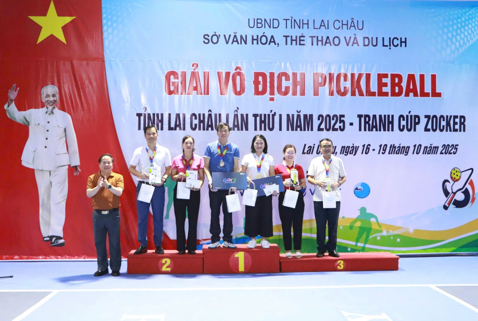 Sau 4 ngày thi đấu sôi nổi với nhiều trận đấu hay, quyết liệt, hấp dẫn, nhiều pha bóng đẹp mắt, chiều nay (19/10), Giải Vô địch Pickleball tỉnh Lai Châu lần thứ I năm 2025 - Tranh cúp ZOCKE do Sở Văn hóa, Thể thao và Du lịch tổ chức đã thành công tốt đẹp và tiến hành bế mạc.