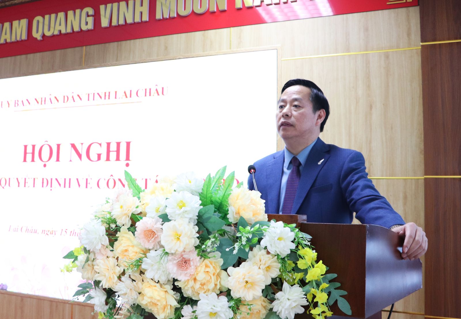 Sáng nay (15/1), UBND tỉnh Lai Châu tổ chức Hội nghị công bố quyết định về công tác cán bộ. Đồng chí Hà Quang Trung - Phó Bí thư Tỉnh ủy, Chủ tịch UBND tỉnh dự, trao quyết định và giao nhiệm vụ.