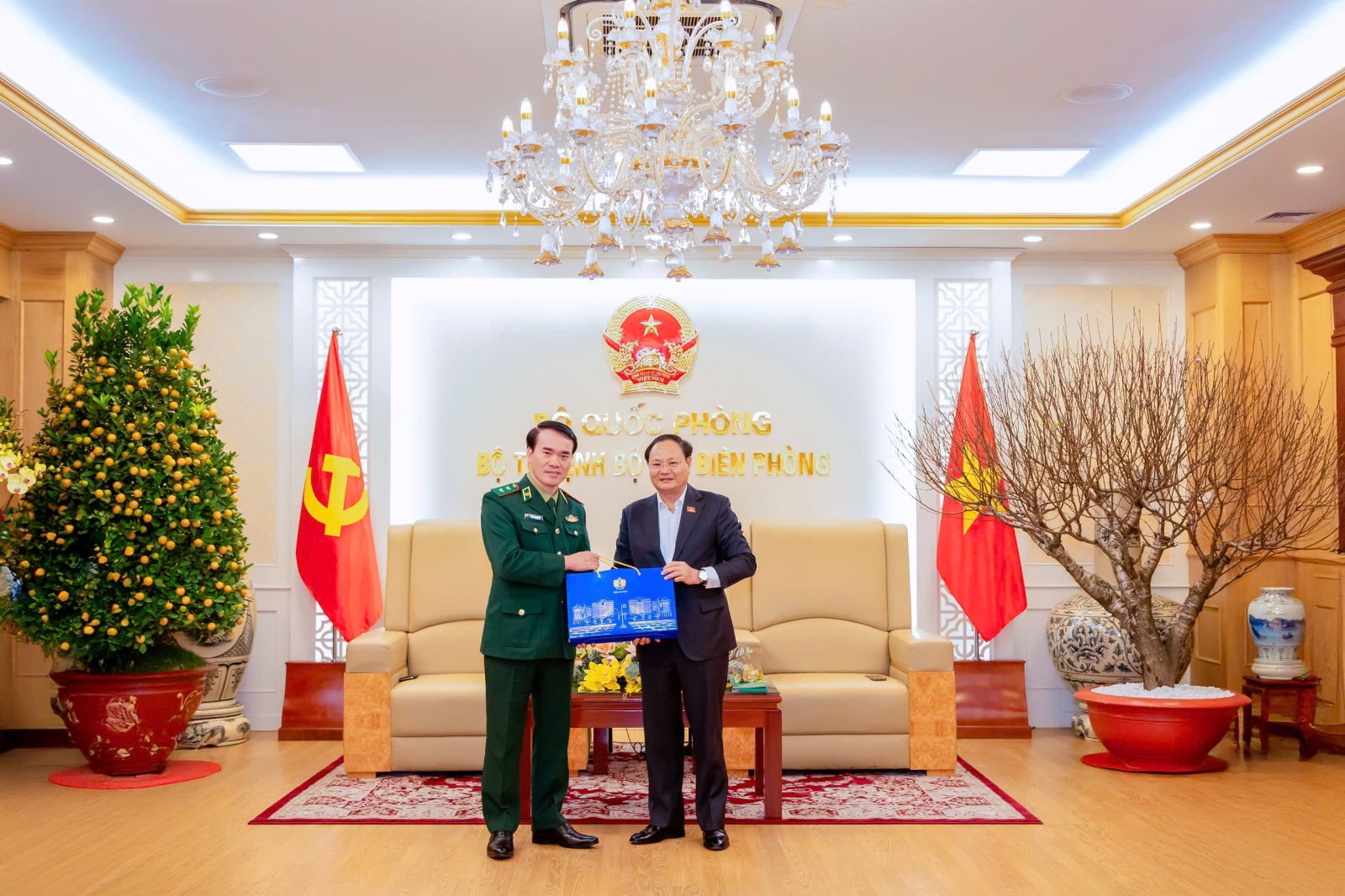 Hôm nay (2/2), tại Hà Nội, Trung tướng Vũ Trung Kiên - Ủy viên Trung ương Đảng, Tư lệnh Bộ đội Biên phòng chủ trì tiếp Đoàn công tác của Tỉnh ủy, Hội đồng nhân dân, Ủy ban nhân dân tỉnh Lai Châu do đồng chí Lê Minh Ngân - Ủy viên Trung ương Đảng, Bí thư Tỉnh ủy Lai Châu làm Trưởng đoàn đến thăm, chúc Tết Bộ Tư lệnh Bộ đội Biên phòng nhân dịp Tết Nguyên đán Bính Ngọ 2026