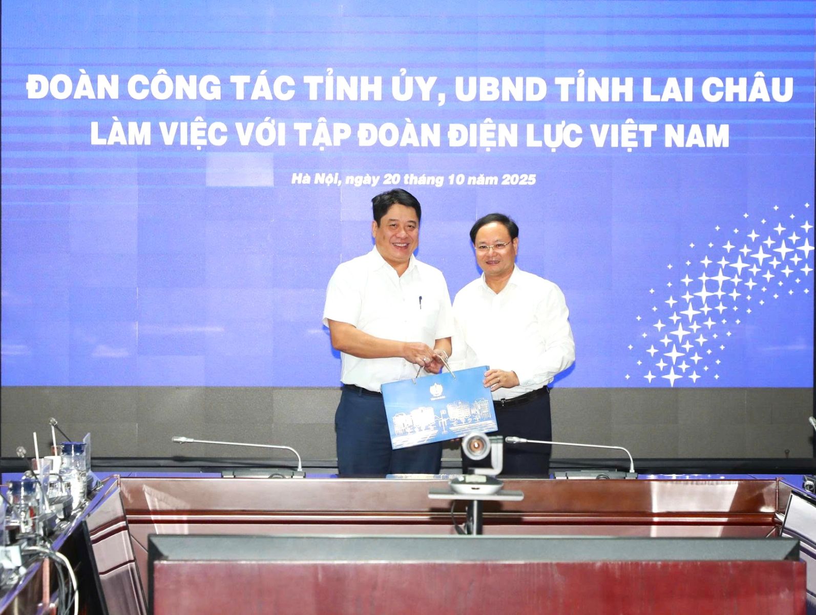 Phát biểu tại buổi làm việc, đồng chí Lê Minh Ngân - Bí thư Tỉnh ủy Lai Châu đánh giá cao vai trò và những đóng góp quan trọng của Tập đoàn Điện lực Việt Nam đối với sự phát triển của tỉnh trong thời gian qua. Đồng chí nhấn mạnh, EVN đã đồng hành cùng Lai Châu trong nhiều năm, đóng góp khoảng 50% vào tổng giá trị sản xuất công nghiệp toàn tỉnh, góp phần thúc đẩy phát triển kinh tế - xã hội, từng bước xóa “bản trắng” về điện, cải thiện đời sống Nhân dân, nhất là ở vùng sâu, vùng xa, biên giới.