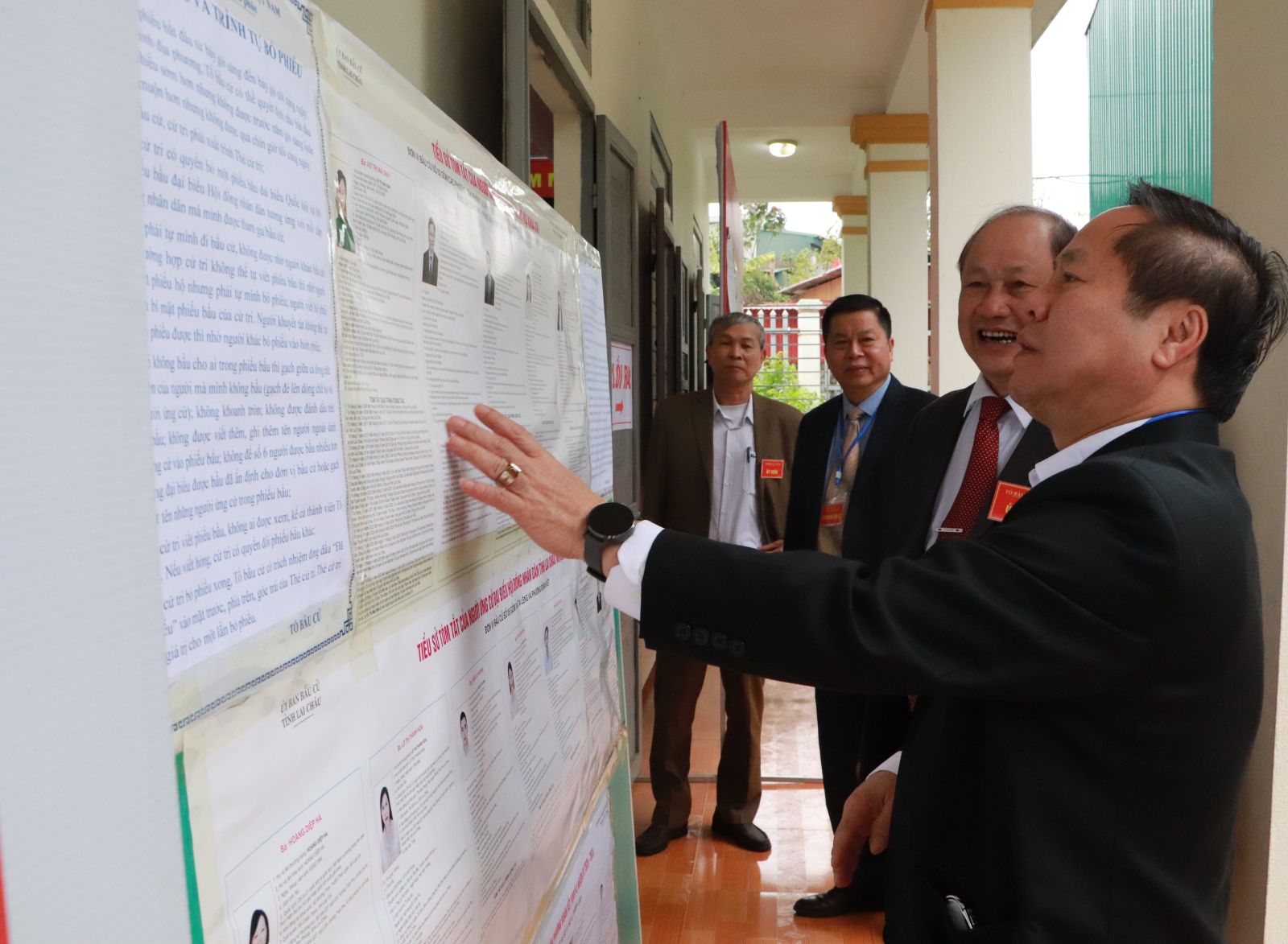 Các đồng chí Ủy ban bầu cử tỉnh kiểm tra công tác bầu cử tại một số xã, phường trên địa bàn tỉnh Lai Châu