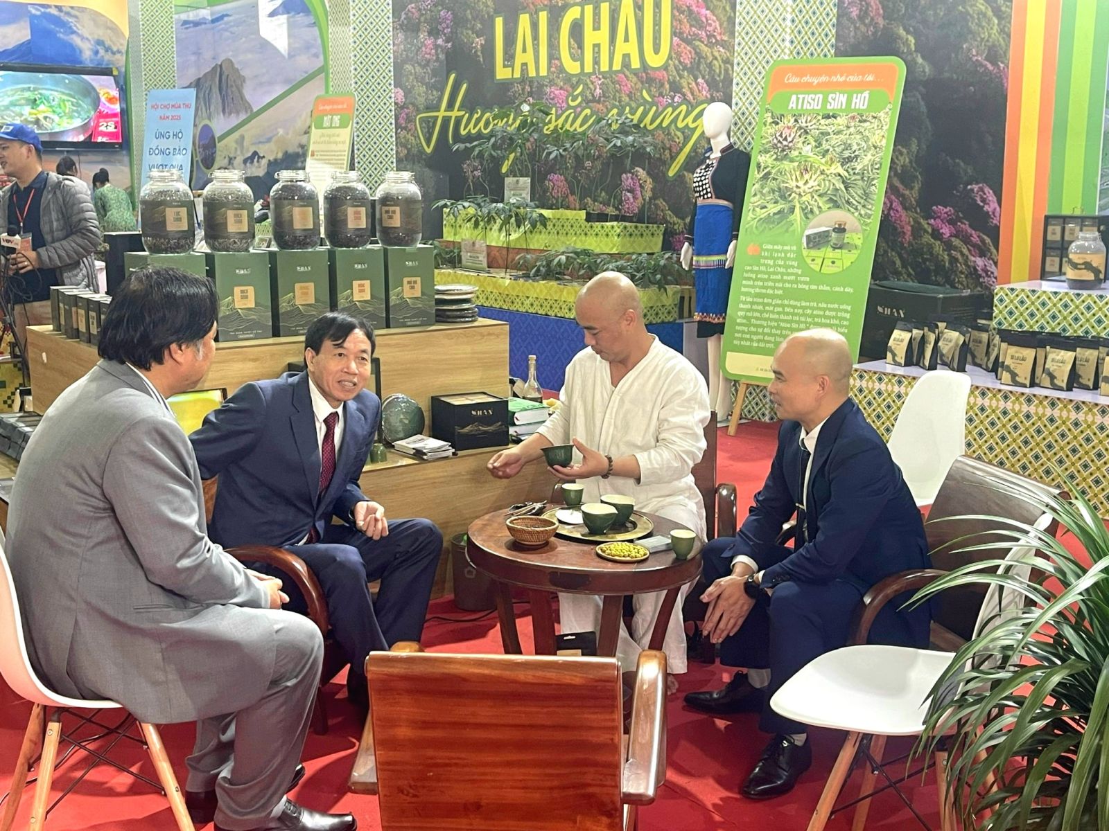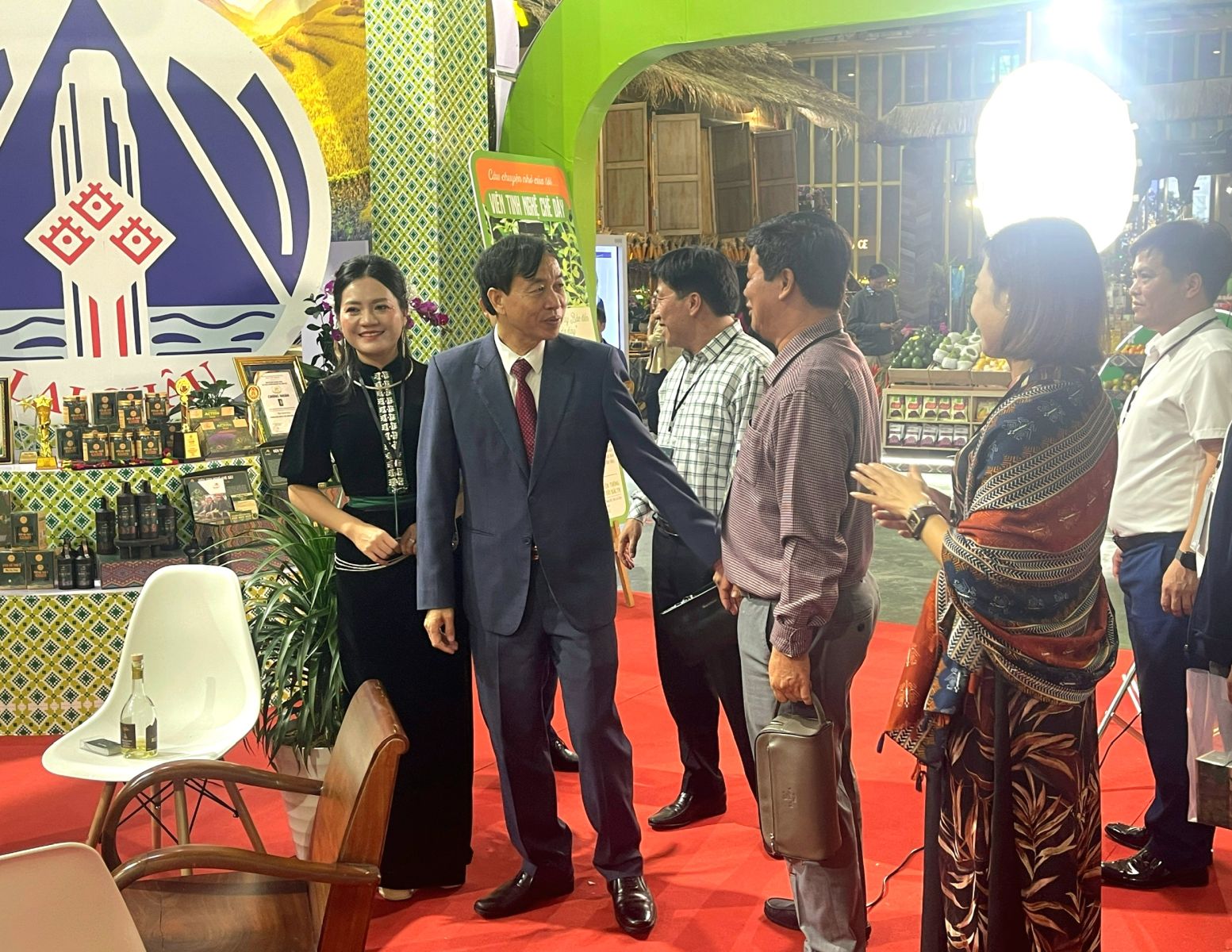 Chủ tịch UBND tỉnh Lai Châu Lê Văn Lương cùng Đoàn công tác của tỉnh dự Khai mạc Hội chợ và đến thăm gian hàng của tỉnh Lai Châu tại Hội chợ.