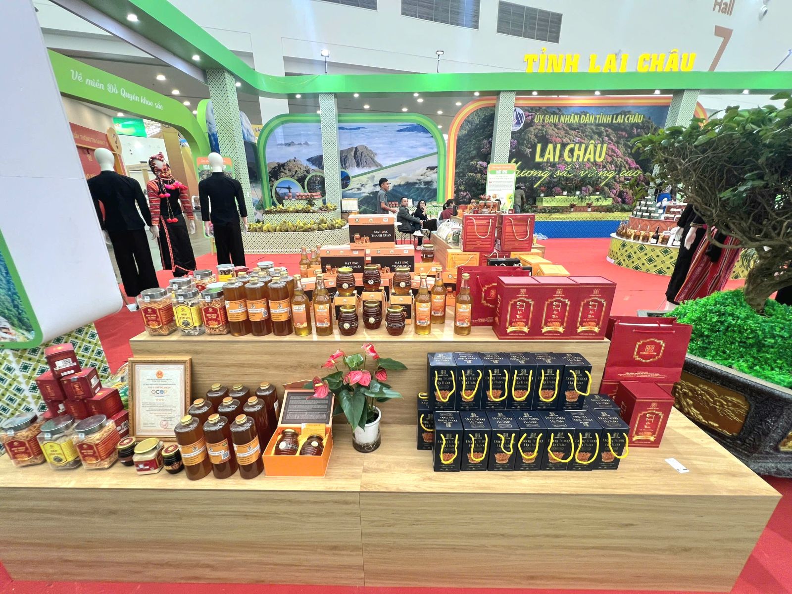 Không gian trưng bày của tỉnh được chia thành 3 chủ đề chính: “Lai Châu - Hương sắc vùng cao”: Giới thiệu nét văn hóa đặc sắc, sản phẩm thủ công truyền thống như thổ cẩm, mây tre đan, cùng hình ảnh những điểm du lịch nổi bật của tỉnh.