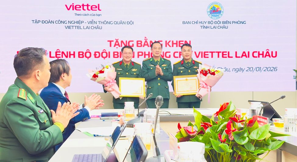 Dịp này, Bộ Tư lệnh Bộ đội Biên phòng tặng Bằng khen cho Tập thể Viettel Lai Châu và 1 cá nhân đã có thành tích tiêu biểu trong công tác phối hợp với lực lượng Bộ đội Biên phòng tỉnh thực hiện chuyển đổi số.