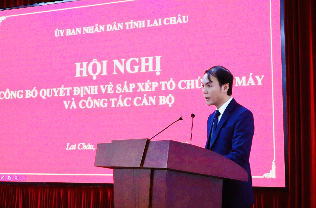 Chiều nay (27/1), UBND tỉnh Lai Châu tổ chức Hội nghị công bố quyết định về sắp xếp tổ chức bộ máy và công tác cán bộ. Đồng chí Hà Quang Trung - Phó Bí thư Tỉnh ủy, Chủ tịch UBND tỉnh dự trao Quyết định và phát biểu giao nhiệm vụ