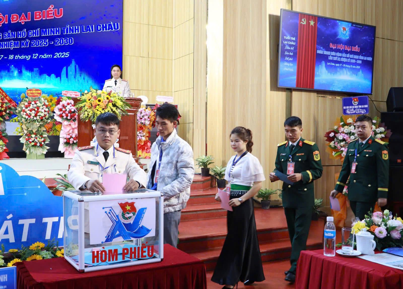 Trước đó, tại phiên làm việc chiều qua (17/12), Đại hội đã tiến hành bầu Ban Chấp hành Đoàn TNCS Hồ Chí Minh tỉnh Lai Châu khóa XV, nhiệm kỳ 2025 - 2030 gồm 27 đồng chí. Tại phiên họp lần thứ nhất, Ban Chấp hành Đoàn TNCS Hồ Chí Minh tỉnh Lai Châu khóa XV, nhiệm kỳ 2025 - 2030 đã bầu Ban Thường vụ Tỉnh đoàn gồm 05 đồng chí, bầu chức danh Bí thư Tỉnh đoàn, Phó Bí thư Tỉnh đoàn; bầu Ủy ban kiểm tra Tỉnh, Chủ nhiệm Ủy ban Kiểm tra Tỉnh đoàn khóa XV, nhiệm kỳ 2025 - 2030. Đồng chí Vừ Thị Mai Dinh tái cử được bầu giữ chức Bí thư Đoàn TNCS Hồ Chí Minh tỉnh Lai Châu khoá XV, nhiệm kỳ 2025 - 2030; đồng chí Bế Thị Bằng tái cử được bầu giữ chức Phó Bí thư Đoàn TNCS Hồ Chí Minh tỉnh Lai Châu khoá XV, nhiệm kỳ 2025 - 2030.