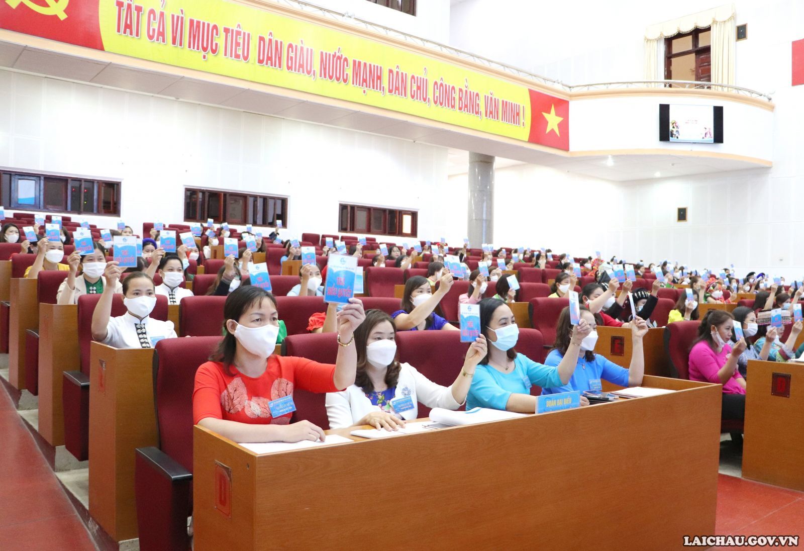 Kết thúc Đại hội, các đại biểu đã tiến hành biểu quyết thông qua Nghị quyết Đại hội Đại biểu Phụ nữ tỉnh Lai Châu lần thứ XII, nhiệm kỳ 2021-2026.