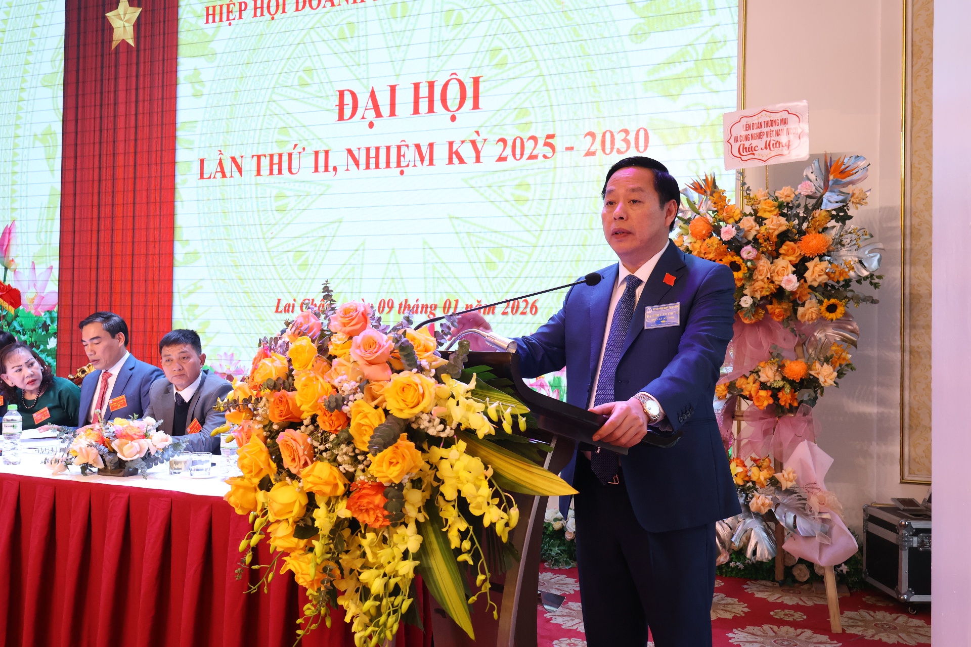 Chiều 9/1, Hiệp hội Doanh nghiệp tỉnh tổ chức Đại hội lần thứ II, nhiệm kỳ 2025-2030. Dự và chỉ đạo Đại hội có đồng chí Hà Quang Trung - Phó Bí thư Tỉnh ủy, Chủ tịch UBND tỉnh. Dự Đại hội còn có các đồng chí: Nguyễn Ngọc Vinh - Phó Bí thư Tỉnh ủy; Tống Thanh Hải -UVBTV Tỉnh uỷ, Phó Chủ tịch Thường trực UBND tỉnh; Hoàng Quang Phòng - Phó Chủ tịch Liên đoàn Thương mại và Công nghiệp Việt Nam (VCCI) cùng đại diện lãnh đạo Hiệp hội Doanh nghiệp các tỉnh: Tuyên Quang, Phú Thọ; Điện Biên; Lào Cai; các sở, ban, ngành, đoàn thể, công ty, doanh nghiệp trong tỉnh tham dự.