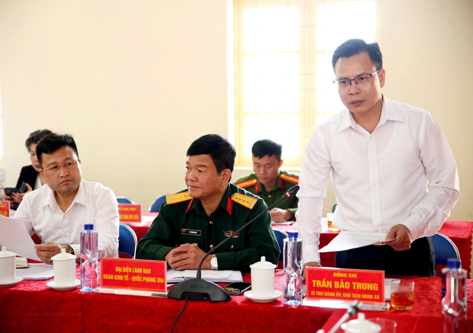 Tiếp đón và làm việc với Đoàn Công tác có các đồng chí lãnh đạo Đảng ủy, HĐND, UBND, Ủy ban Mặt trận Tổ Quốc Việt Nam xã, các phòng, ban chuyên môn xã Sì Lở Lầu; lãnh đạo Đoàn Kinh tế Quốc phòng 356 (Quân khu 2); đại diện Công ty Cổ phần Tập đoàn Nam Cường Hà Nội…