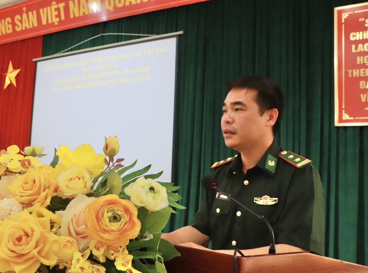 Phát biểu tại buổi thăm và tặng quà, đồng chí Lê Anh Chiến - Phó Trưởng Ban Tuyên giáo và Dân vận Đảng ủy Tập đoàn Công nghiệp - Năng lượng Quốc gia Việt Nam đã thông tin về những thành tựu nổi bật của Tập đoàn trong sản xuất kinh doanh cũng như công tác an sinh xã hội, đền ơn đáp nghĩa trong thời gian qua. Đồng thời, chia sẻ với những khó khăn của cán bộ, chiến sĩ Đồn Biên phòng Sin Suối Hồ và động viên cán bộ, chiến sĩ Đồn Biên phòng Sin Suối Hồ đoàn kết, khắc phục khó khăn, tiếp tục làm tốt công tác bảo vệ biên giới, giữ bình yên cho Nhân dân…