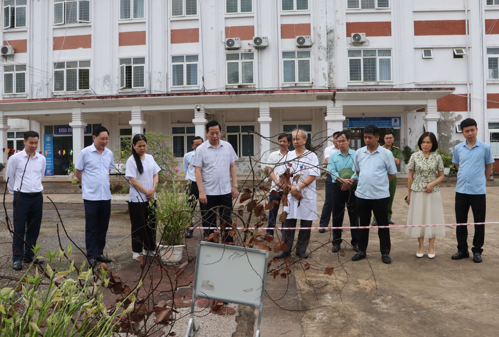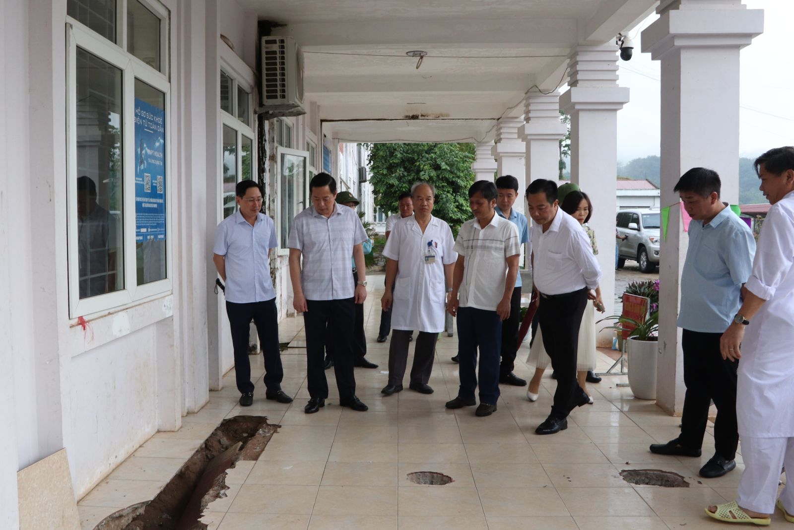 Tại xã Nậm Tăm, Chủ tịch UBND tỉnh Hà Quang Trung và Đoàn công tác đã kiểm tra khu vực sụt lún tại Bệnh viện Đa khoa Pa Há, kiểm tra thực địa vùng lòng hồ và các khu vực sản xuất, chăn nuôi của xã.