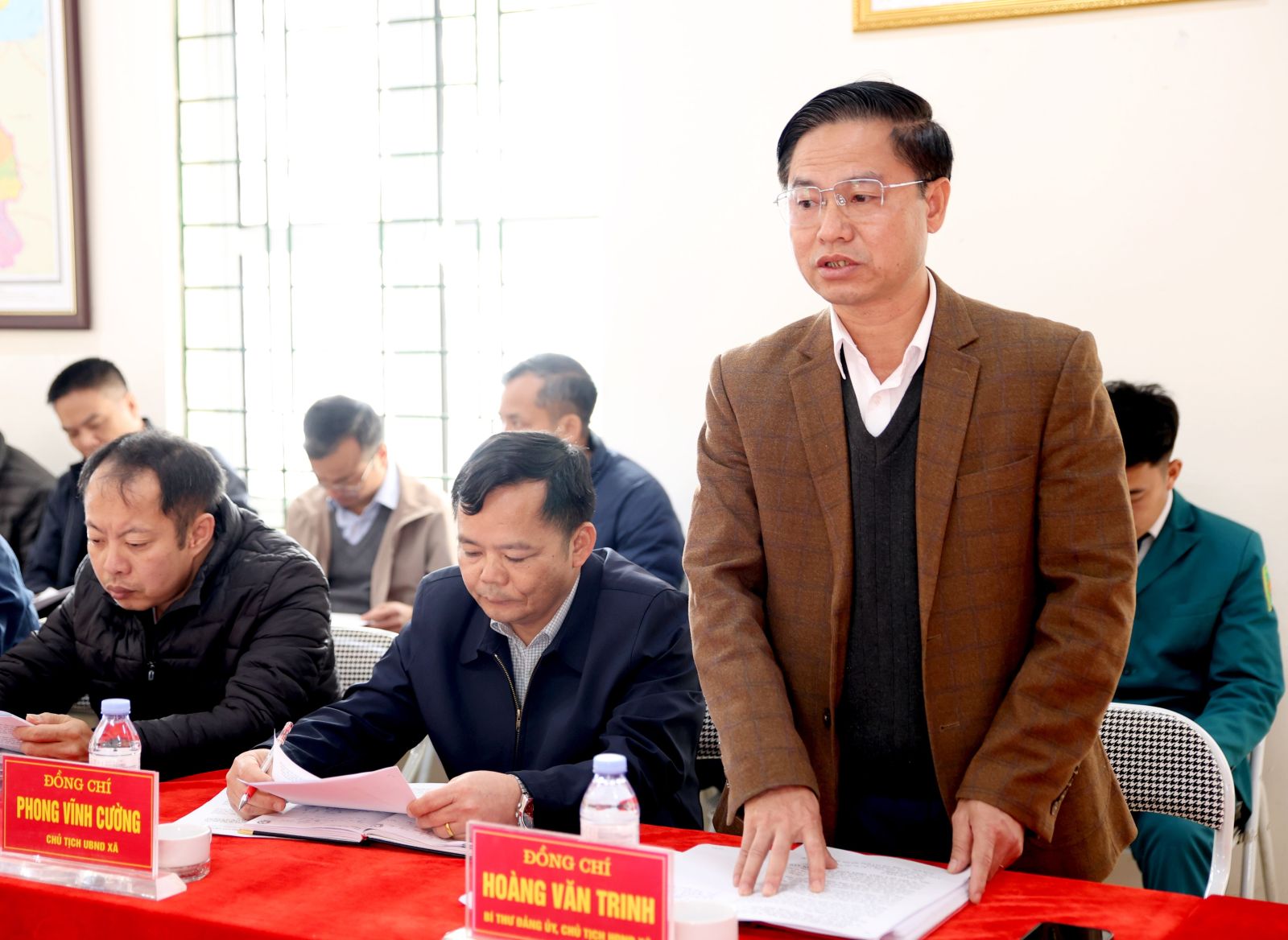 Tại buổi làm việc, thành viên Đoàn công tác đã phát biểu một số nội dung liên quan đến: Đảm bảo kết nối giao thông; bố trí kinh phí xây dựng Trường Mầm non Hồ Thầu giai đoạn 2, Trường THCS Giang Ma, khu tái định cư tại trung tâm xã Tả Lèng, di dời các hộ dân tại bản Phô Hồ Thầu; mở các lớp tập huấn, bồi dưỡng kỹ năng nghiệp vụ chuyên sâu cho các lĩnh vực văn hóa - xã hội, kinh tế…