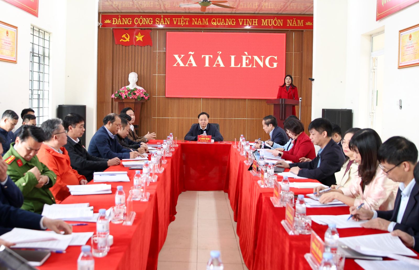 Bí thư Tỉnh uỷ Lê Minh Ngân cũng đề nghị UBND tỉnh chỉ đạo các sở, ngành cân đối, tính toán nguồn tài chính trong việc giãn dân, ổn định dân cư, xây dựng trường học trên địa bàn xã Tả Lèng, tránh lãng phí. Các sở, ngành tổ chức tập huấn thêm chuyên môn, nghiệp vụ cho cán bộ, công chức cấp xã.