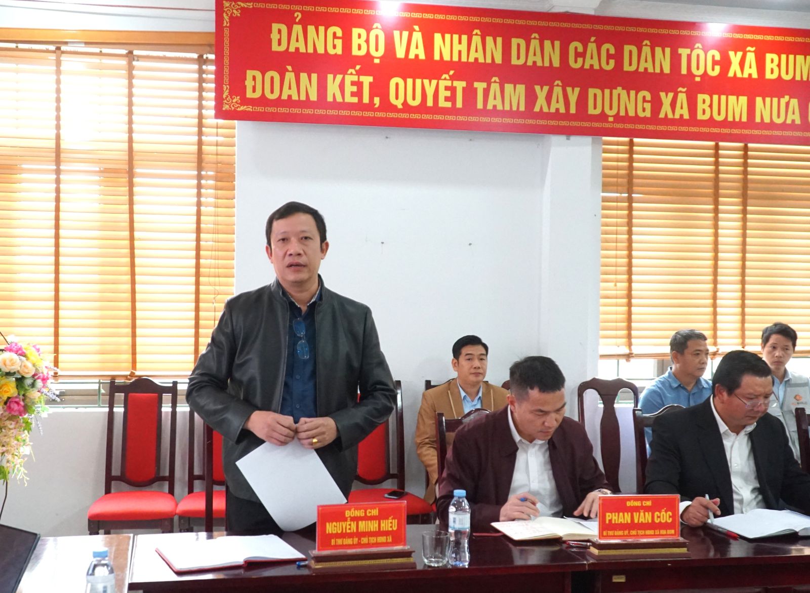Sau khi kiểm tra, tại xã Bum Nưa, Đoàn công tác đã có buổi làm việc với lãnh đạo các xã Hua Bum, Bum Nưa; chủ đầu tư và các đơn vị thi công.