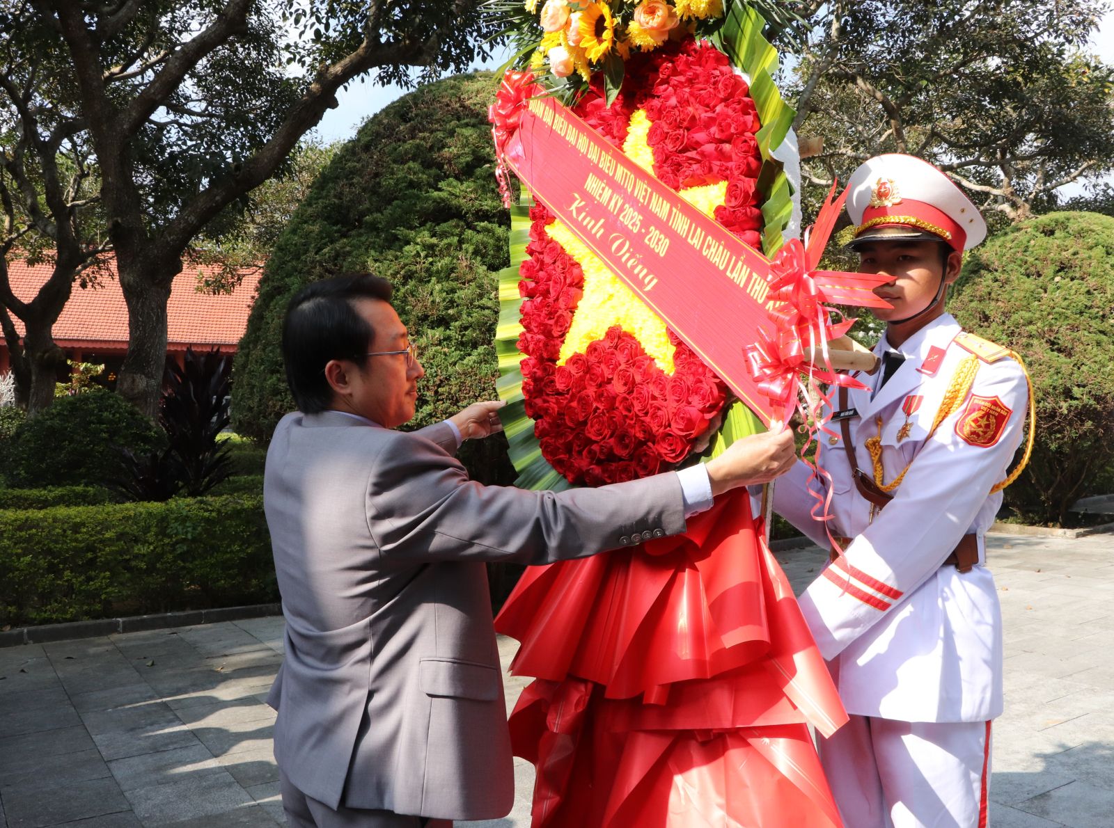 Chiều nay (4/12), trước thềm Đại hội Đại biểu Mặt trận Tổ quốc Việt Nam tỉnh Lai Châu lần thứ XIV, nhiệm kỳ 2025 - 2030, Đoàn đại biểu dự Đại hội do đồng chí Sùng A Hồ - Phó Bí thư Thường trực Tỉnh ủy, Chủ tịch Ủy ban Mặt trận Tổ quốc Việt Nam tỉnh làm Trưởng đoàn đã viếng Nghĩa trang Liệt sĩ tỉnh.