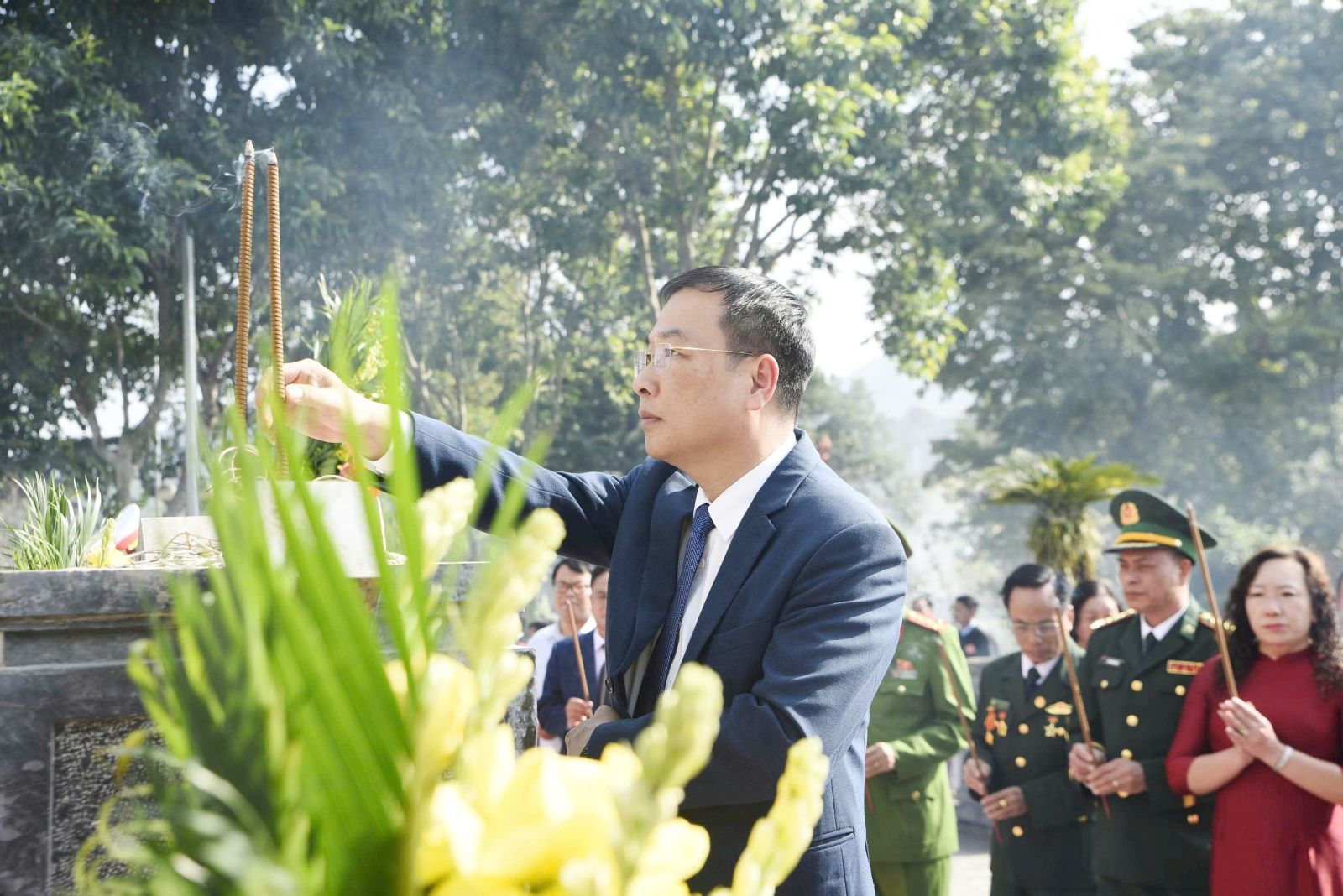 Tại Nghĩa trang Liệt sĩ tỉnh, Đoàn đại biểu cũng dâng vòng hoa tươi thắm, thắp nén hương thơm tưởng nhớ và tri ân sâu sắc các Anh hùng, liệt sĩ, những người con ưu tú đã anh dũng hi sinh vì độc lập, tự do của Tổ quốc và hạnh phúc của Nhân dân.
