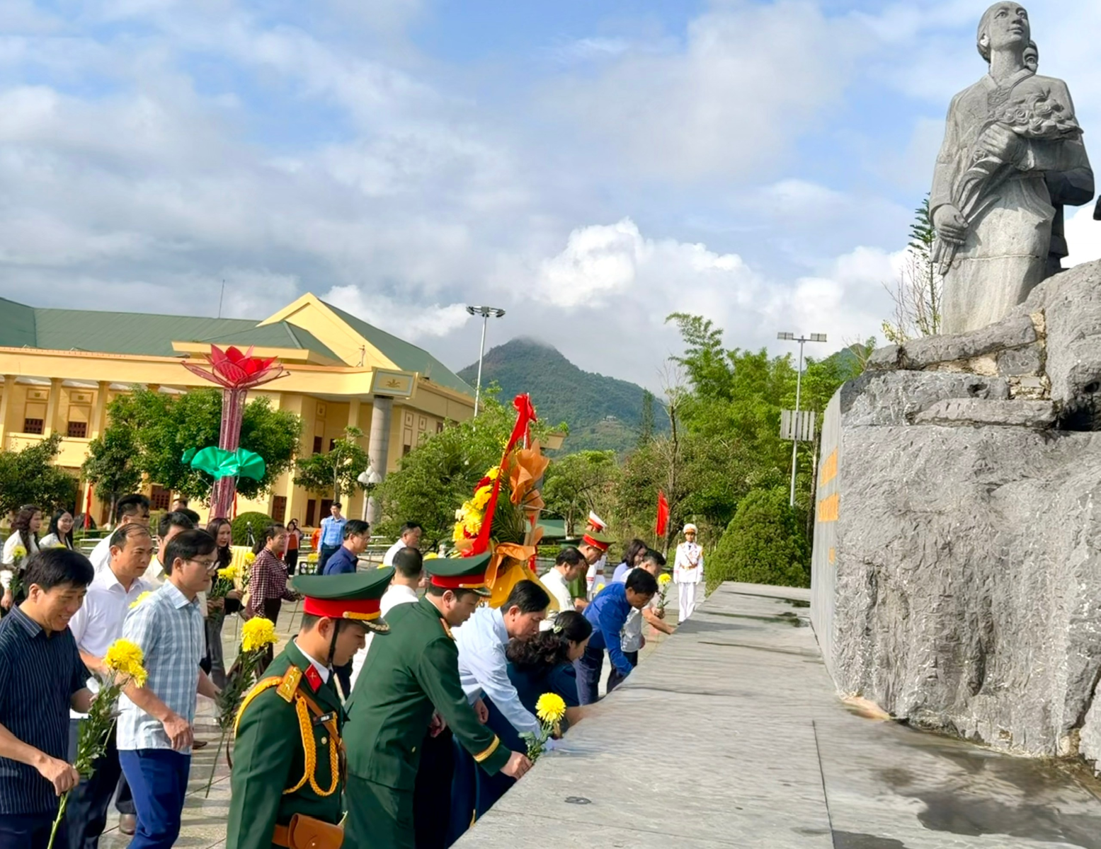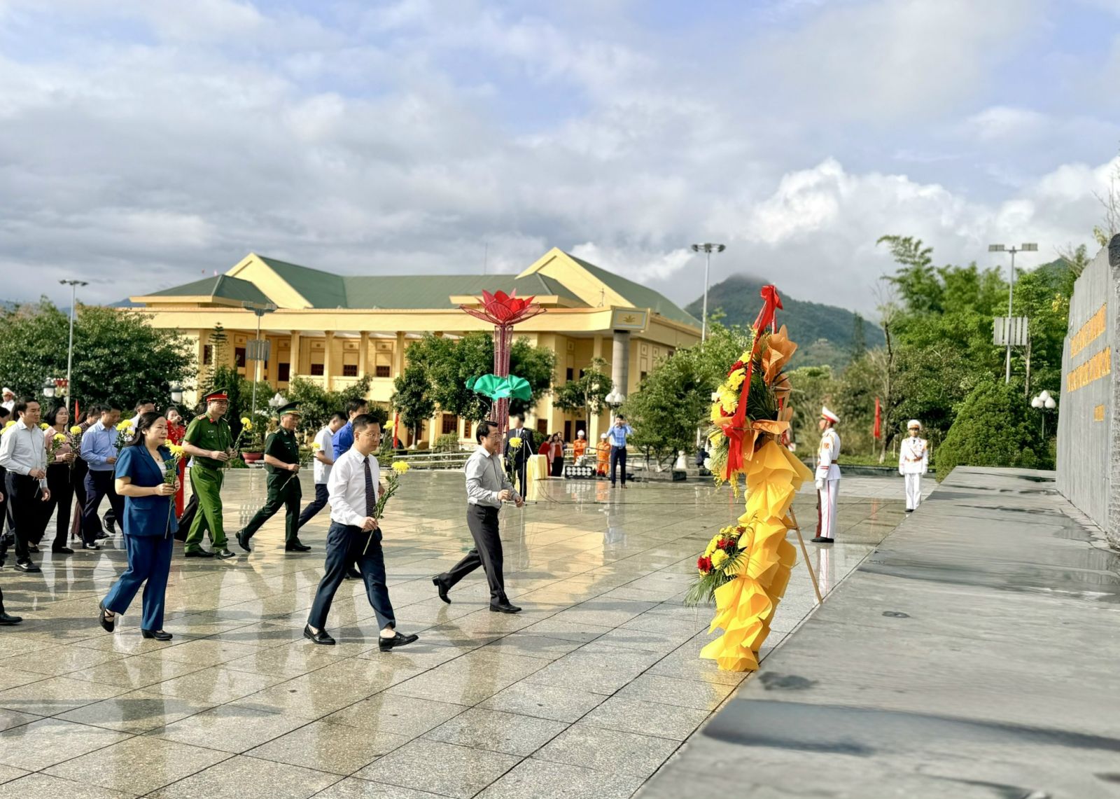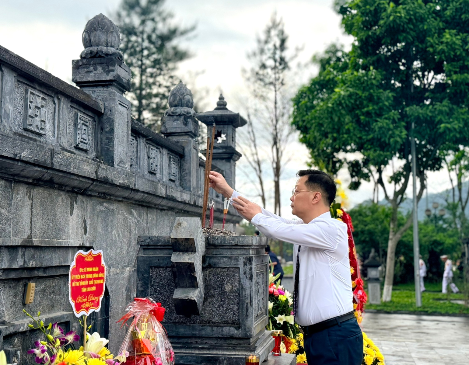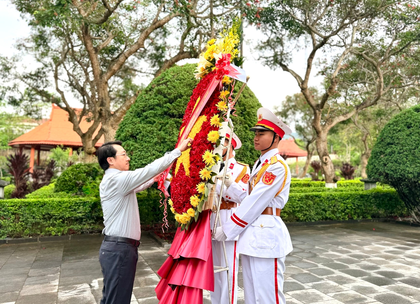 Tại buổi lễ, trong không khí thiêng liêng, Đoàn đại biểu đã đặt vòng hoa, dâng hương và dành một phút tưởng niệm để tri ân sâu sắc công lao to lớn của các Anh hùng liệt sĩ. Đồng thời khẳng định những thành quả hôm nay chính là sự tiếp nối lý tưởng cao đẹp mà các Anh hùng liệt sĩ đã lựa chọn và đánh đổi bằng cả tuổi thanh xuân, bằng xương máu của mình.