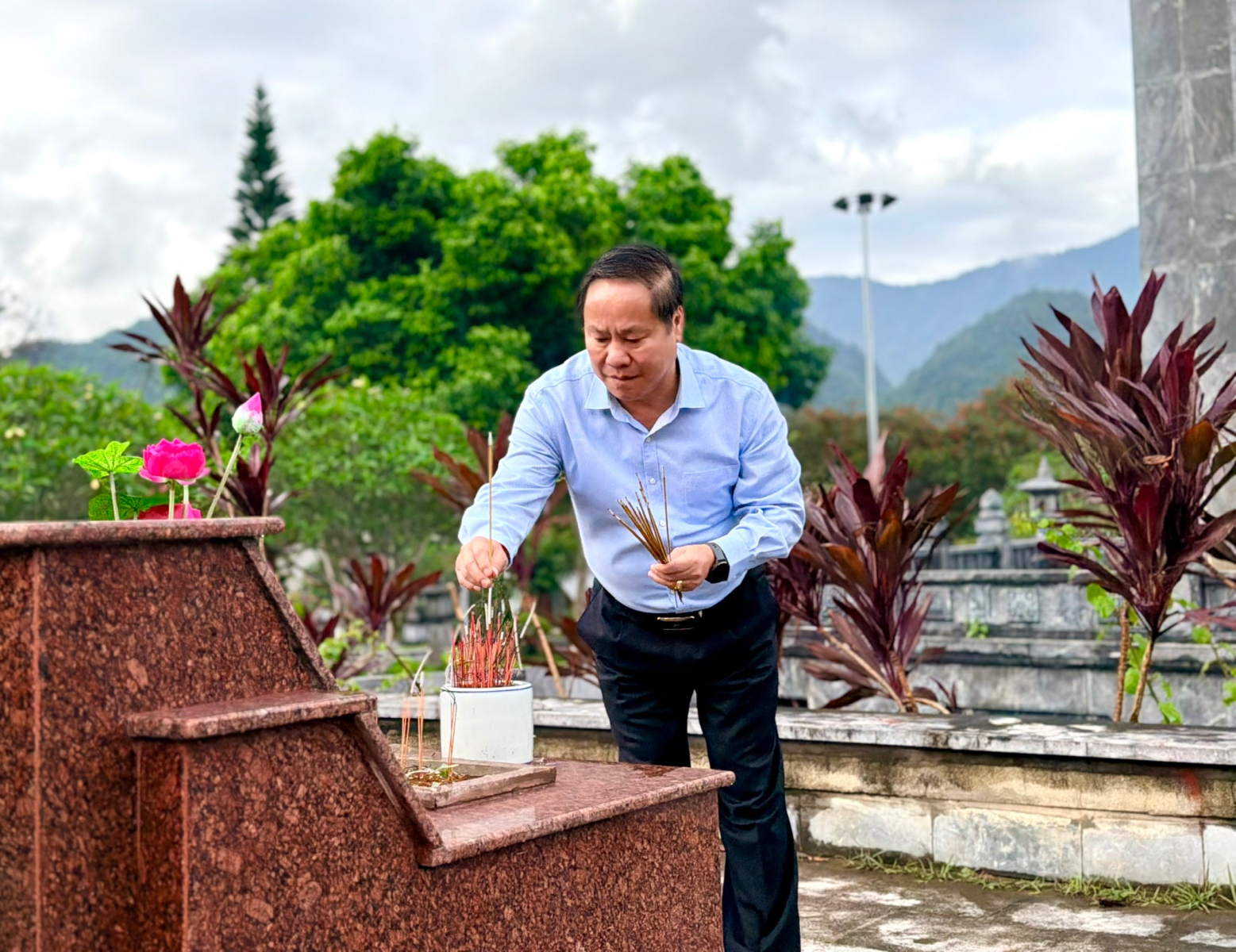 Sau nghi thức tưởng niệm tại Đài tưởng niệm Tổ quốc ghi công, các đồng chí lãnh đạo tỉnh đã đến thắp hương tại từng phần mộ liệt sĩ, bày tỏ lòng thành kính.