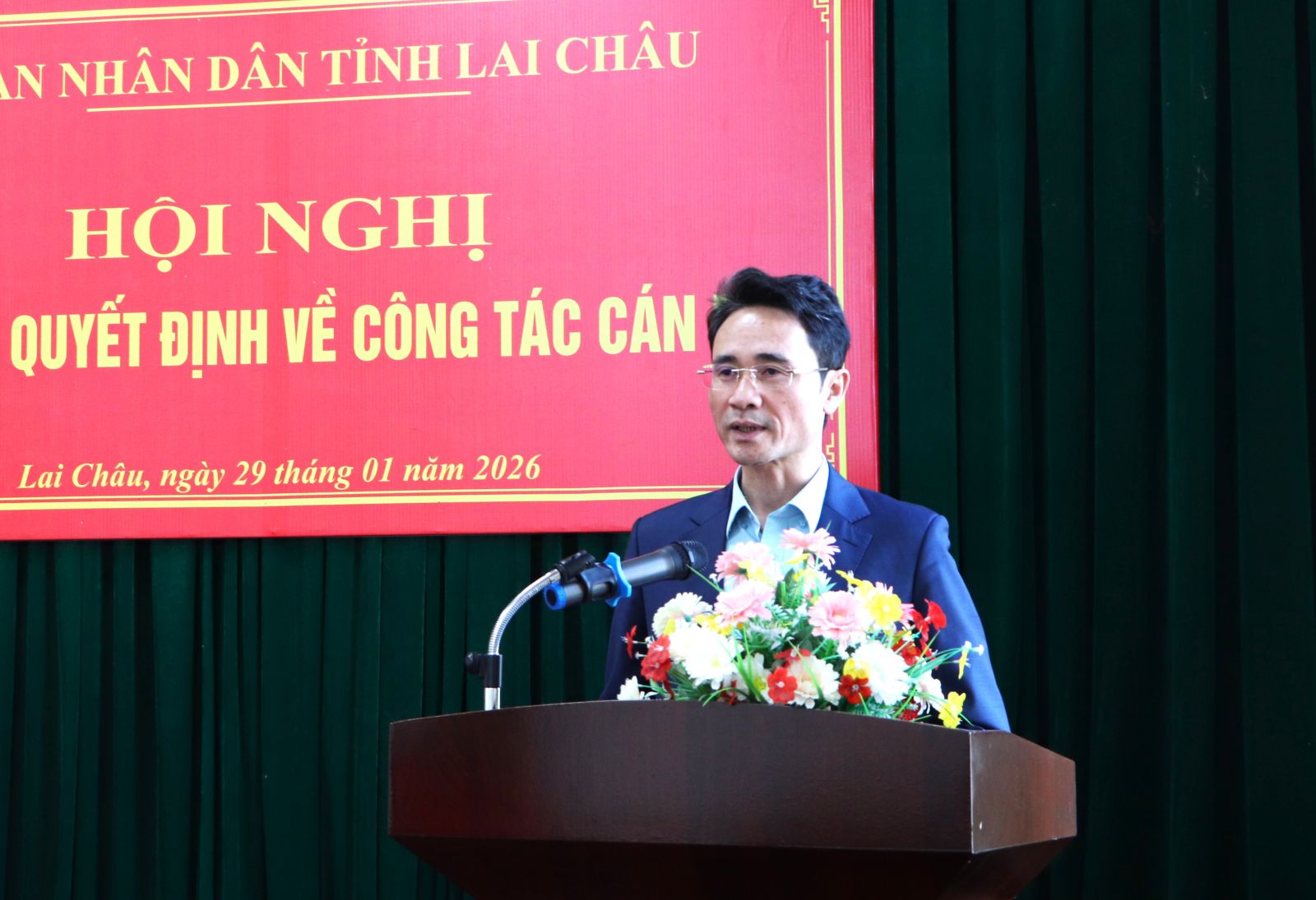 Chiều nay (29/1), UBND tỉnh Lai Châu tổ chức Hội nghị công bố Quyết định về công tác cán bộ. Đồng chí Hà Trọng Hải - Phó Chủ tịch UBND tỉnh dự, trao Quyết định và phát biểu giao nhiệm vụ.