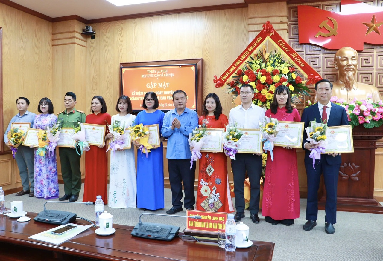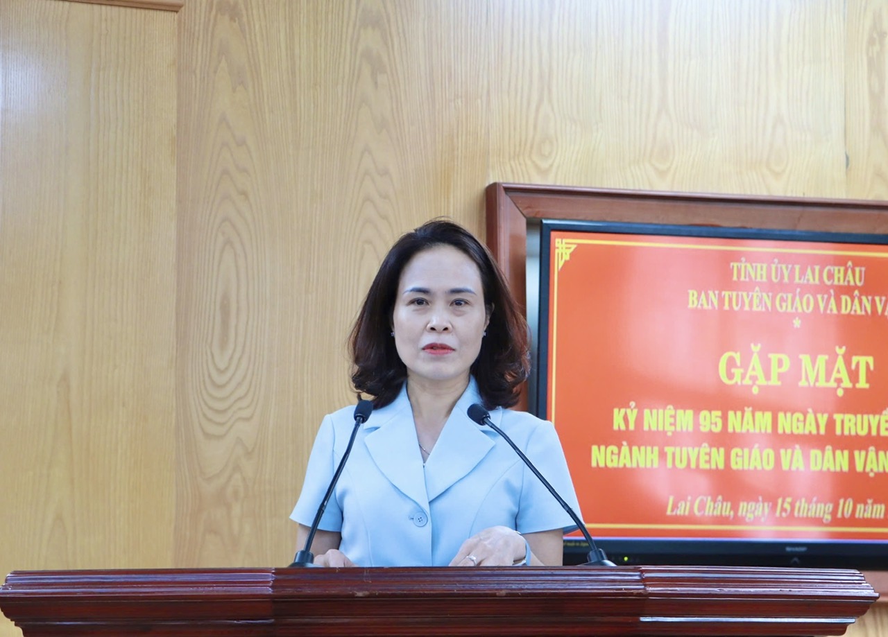 Trong tiến trình lịch sử hình thành, phát triển, đội ngũ cán bộ tuyên giáo và dân vận của Đảng, trong đó có đội ngũ cán bộ của tỉnh Lai Châu luôn nêu cao tinh thần trách nhiệm - tận tụy - kiên định - đổi mới - sáng tạo; làm tốt công tác tư tưởng, tuyên truyền, vận động Nhân dân, góp phần giữ vững khối đại đoàn kết các dân tộc, tạo sự đồng thuận trong xã hội, củng cố niềm tin của Nhân dân vào sự lãnh đạo của Đảng.