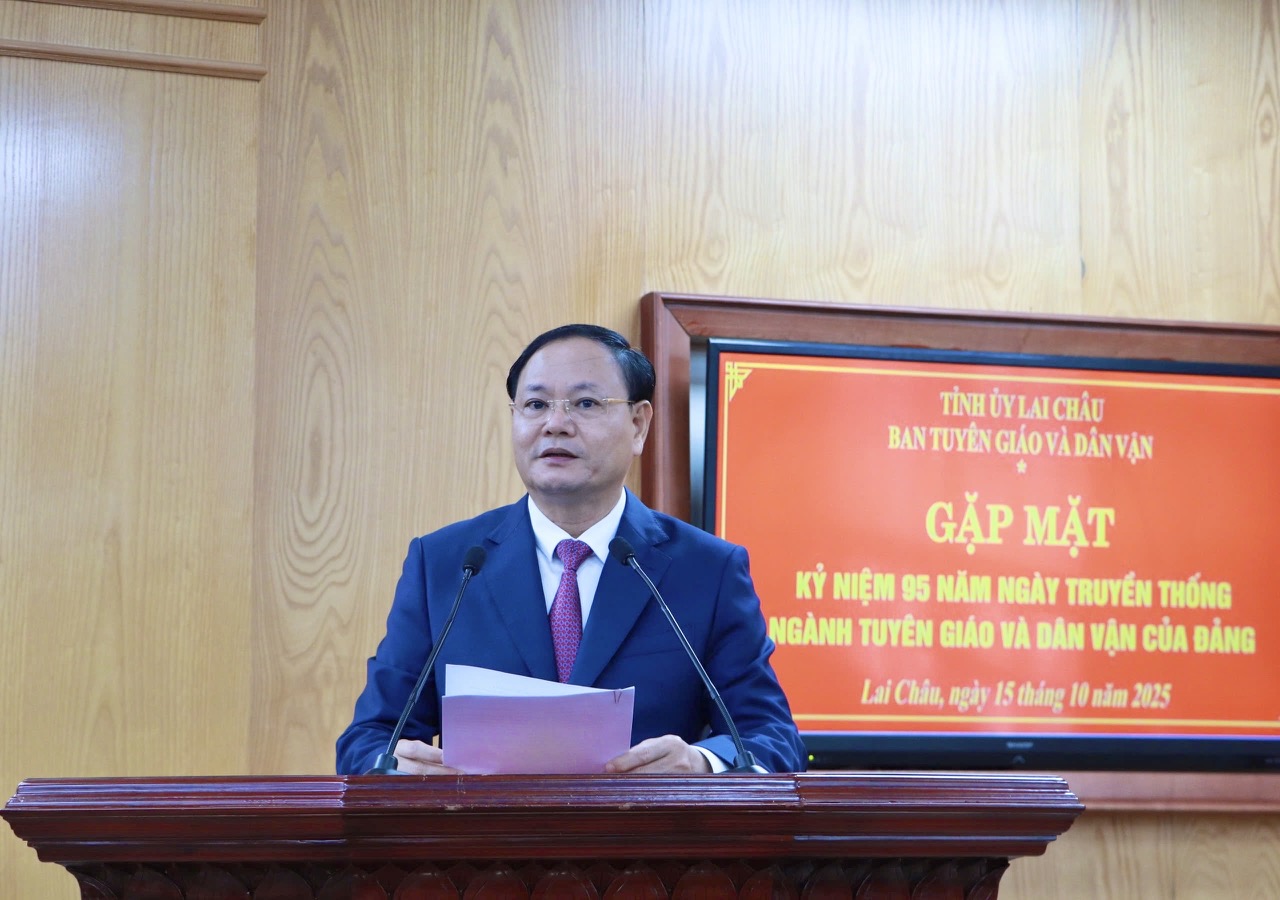 Với bề dày truyền thống 95 năm vẻ vang, đồng chí Bí thư Tỉnh ủy tin tưởng công tác tuyên giáo và dân vận của tỉnh sẽ tiếp tục phát huy truyền thống, trí tuệ và nêu cao tinh thần trách nhiệm, chung sức, đồng lòng cùng Đảng bộ, chính quyền và Nhân dân trong tỉnh thực hiện thắng lợi Nghị quyết Đại hội XV Đảng bộ tỉnh, xây dựng tỉnh Lai Châu phát triển xanh, nhanh, bền vững, cùng cả nước bước vào kỷ nguyên mới - Kỷ nguyên vươn mình của dân tộc.