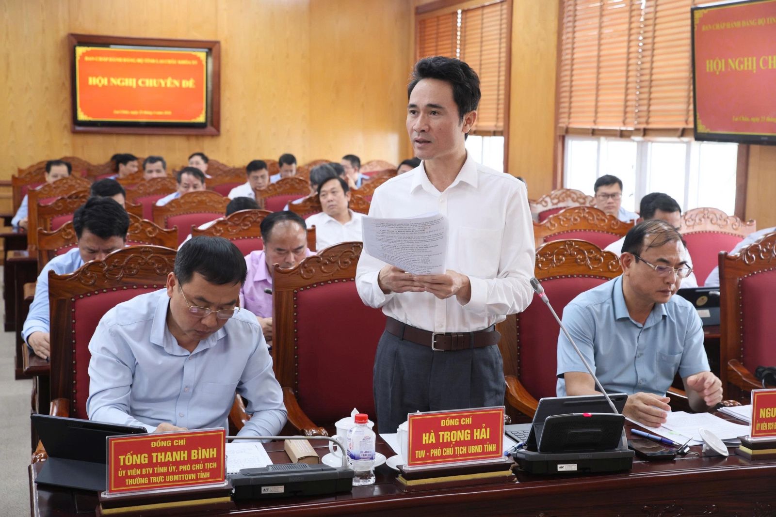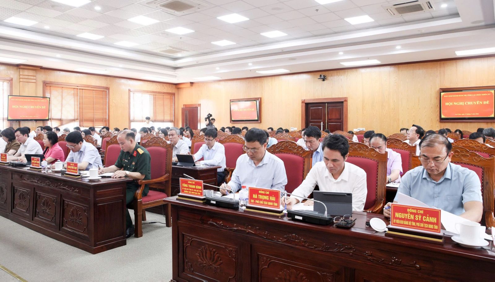 Cùng điều hành Hội nghị có các đồng chí: Nguyễn Tuấn Anh - Ủy viên Dự khuyết Ban Chấp hành Trung ương Đảng, Phó Bí thư Thường trực Tỉnh ủy; Hà Quang Trung - Phó Bí thư Tỉnh ủy, Chủ tịch UBND tỉnh; Nguyễn Ngọc Vinh - Phó Bí thư Tỉnh ủy, Chủ tịch Ủy ban MTTQ Việt Nam tỉnh.