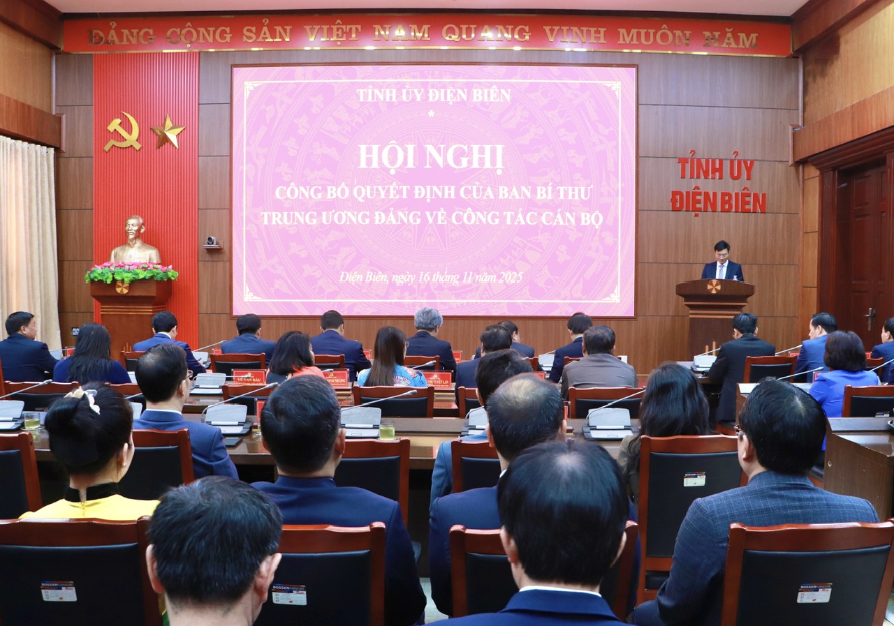 Tại Hội nghị, đại diện Ban Tổ chức Trung ương đã công bố Quyết định số 2523-QĐNS/TW ngày 14/11/2025 của Ban Bí thư Trung ương Đảng về việc điều động, chỉ định giữ chức Phó Bí thư Tỉnh uỷ Điện Biên nhiệm kỳ 2025 - 2030. Theo đó, Ban Bí thư quyết định đồng chí Lê Văn Lương - Phó Bí thư Tỉnh uỷ, Chủ tịch UBND tỉnh Lai Châu thôi tham gia Ban Chấp hành, Ban Thường vụ và thôi giữ chức Phó Bí thư Tỉnh uỷ Lai Châu nhiệm kỳ 2025 - 2030; điều động, chỉ định tham gia Ban Chấp hành, Ban Thường vụ và giữ chức Phó Bí thư Tỉnh uỷ Điện Biên nhiệm kỳ 2025 - 2030.