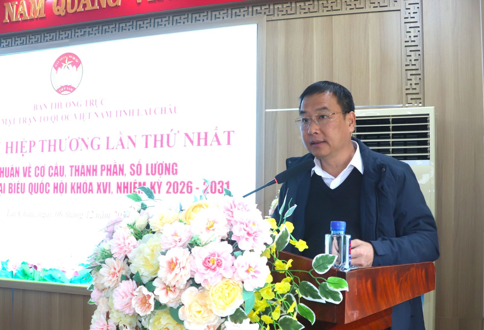 Cũng trong sáng nay (6/12), các đồng chí: Sùng A Hồ - Phó Bí thư Thường trực Tỉnh ủy, Chủ tịch Ủy ban MTTQ Việt Nam tỉnh; Tống Thanh Bình - Ủy viên Ban Thường vụ Tỉnh ủy, Phó Chủ tịch Thường trực Ủy ban MTTQ Việt Nam tỉnh chủ trì Hội nghị hiệp thương lần thứ nhất thỏa thuận về cơ cấu, thành phấn, số lượng người ứng cử đại biểu HĐND tỉnh khóa XVI, nhiệm kỳ 2026 - 2031.