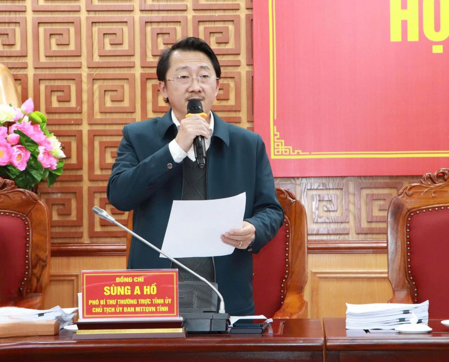 Cùng điều hành Hội nghị có các đồng chí: Nguyễn Tuấn Anh - Ủy viên Dự khuyết Ban Chấp hành Trung ương Đảng, Phó Bí thư Tỉnh ủy; Sùng A Hồ - Phó Bí thư Thường trực Tỉnh ủy; Hà Quang Trung - Phó Bí thư Tỉnh ủy, Chủ tịch UBND tỉnh; Nguyễn Ngọc Vinh - Phó Bí thư Tỉnh ủy, Chủ nhiệm Ủy ban Kiểm tra Tỉnh ủy, Chủ tịch Ủy ban MTTQ Việt Nam tỉnh.