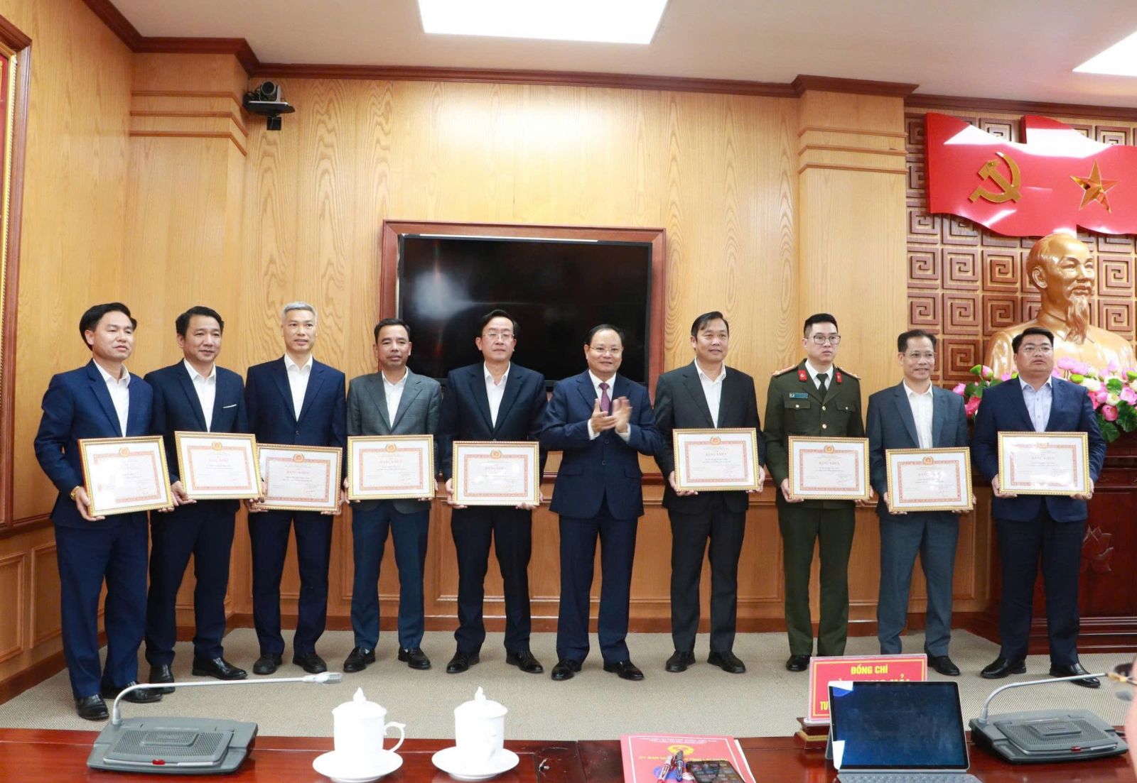 Nhân dịp này, Ban Thường vụ Tỉnh ủy đã tặng Bằng khen cho 9 Đảng bộ trực thuộc tỉnh đạt tiêu chuẩn "Hoàn thành xuất sắc nhiệm vụ" tiêu biểu năm 2025; tặng Cờ cho 1 tổ chức cơ sở đảng đạt tiêu chuẩn "Hoàn thành xuất sắc nhiệm vụ" tiêu biểu 5 năm liền; tặng Bằng khen cho 7 chi bộ trực thuộc đạt tiêu chuẩn "Hoàn thành xuất sắc nhiệm vụ" tiêu biểu 5 năm liền và 37 đảng viên đạt tiêu chuẩn "Hoàn thành xuất sắc nhiệm vụ" tiêu biểu 5 năm liền (2021 - 2025).
