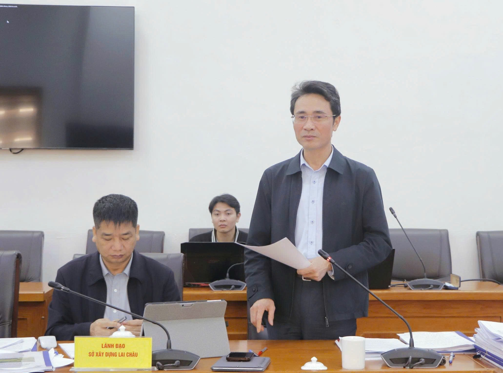 Đồng chí Phó Chủ tịch UBND tỉnh Hà Trọng Hải yêu cầu các sở, ngành liên quan chủ động phối hợp chặt chẽ với đơn vị tư vấn, bám sát các chỉ tiêu, nhiệm vụ đã được xác định tại Quyết định số 333/QĐ-UBND ngày 27/2/2026 của Chủ tịch UBND tỉnh về việc điều chỉnh Quy hoạch tỉnh Lai Châu giai đoạn 2021 - 2030, tầm nhìn đến năm 2050 để rà soát, điều chỉnh nội dung quy hoạch cấp xã theo hướng phù hợp, sát với thực tiễn, bảo đảm tính đồng bộ, khả thi. Từ đó khẩn trương hoàn thiện hồ sơ để trình UBND tỉnh và Đảng ủy UBND tỉnh xem xét trong thời gian sớm nhất.