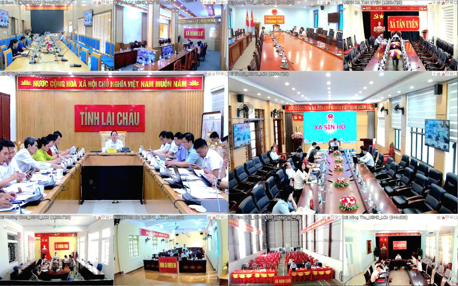 Cuộc họp được tổ chức bằng hình thức trực tiếp tại điểm cầu tỉnh và kết nối trực tuyến đến điểm cầu các xã.