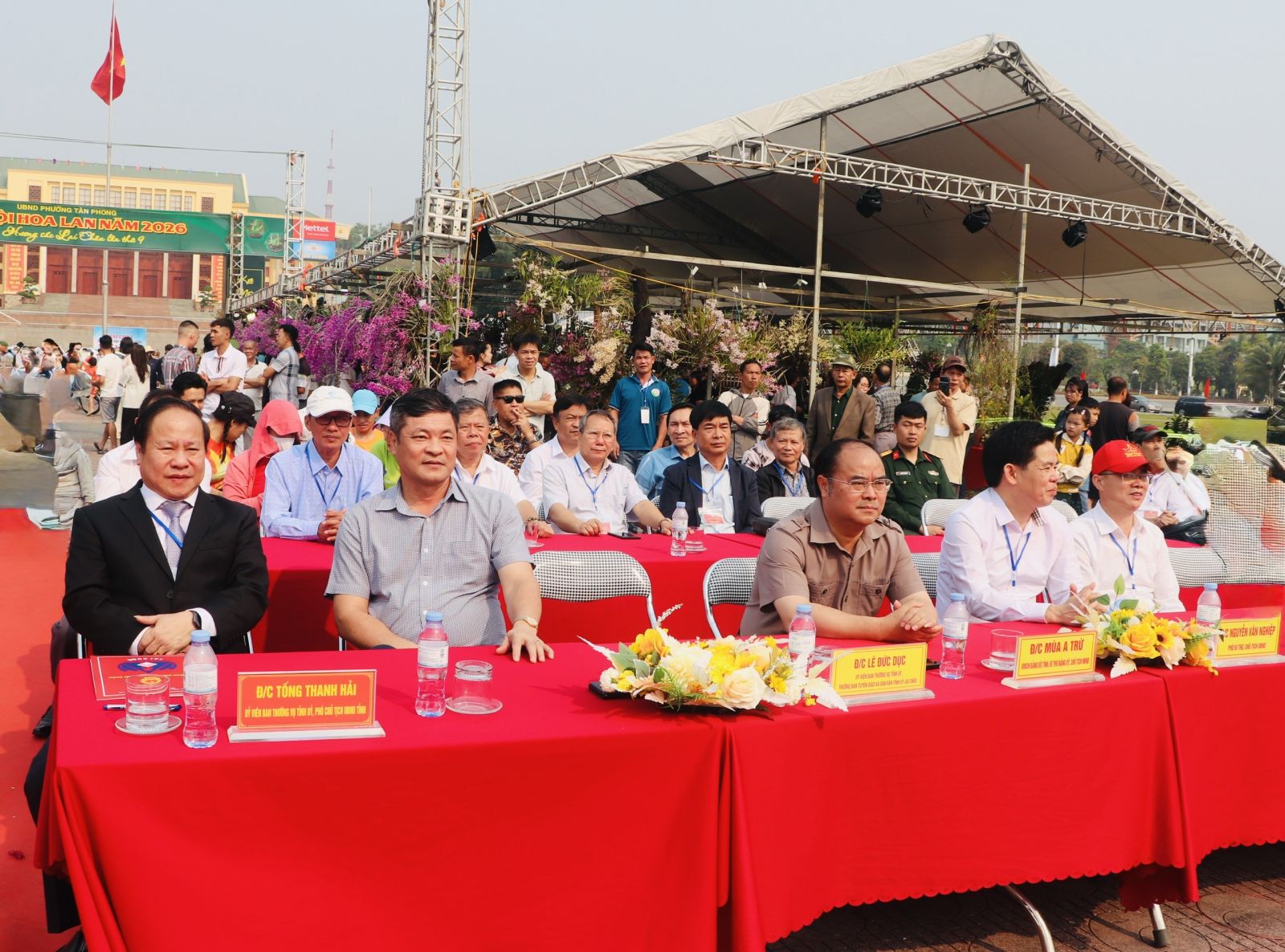 Về phía phường Tân Phong có các đồng chí: Mùa A Trừ - Bí thư Đảng ủy, Chủ tịch HĐND phường; Nguyễn Văn Nghiệp - Chủ tịch UBND phường; Lê Xuân Dũng - Phó Chủ tịch UBND phường, Trưởng Ban Tổ chức Lễ hội.