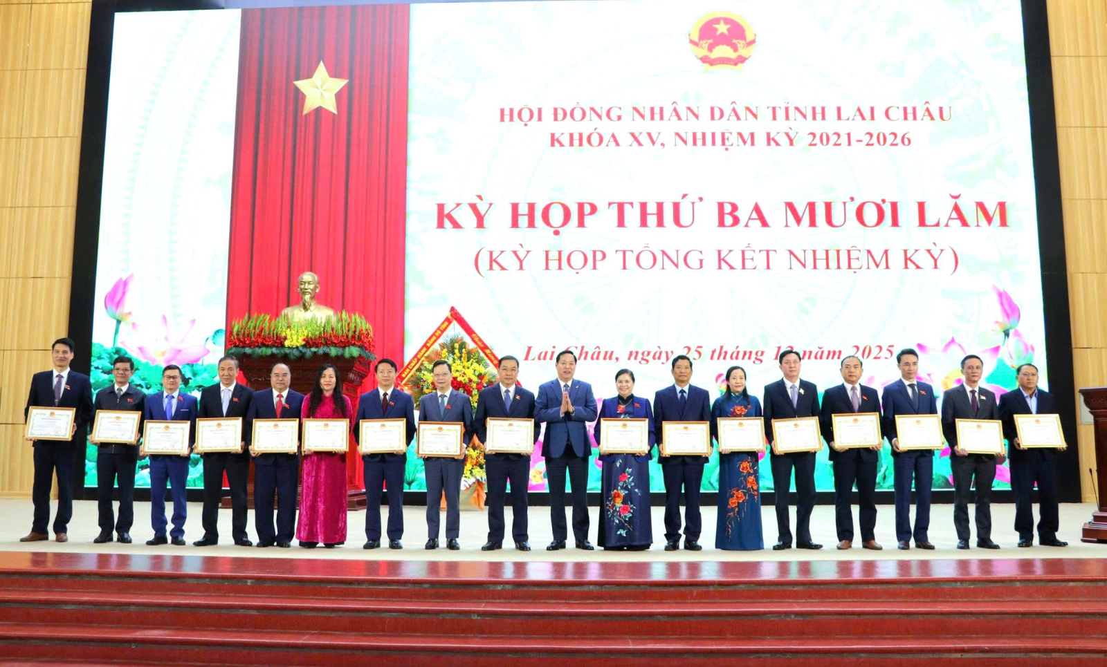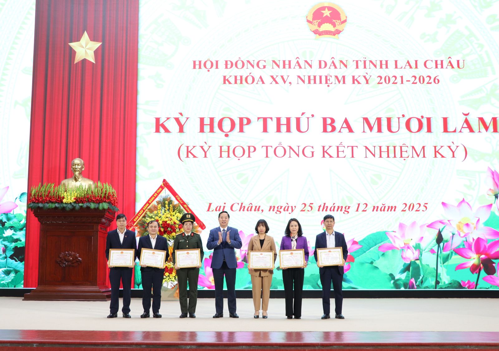 Dịp này, Chủ tịch UBND tỉnh Lai Châu tặng Bằng khen cho 6 tập thể và 35 cá nhân có thành tích xuất sắc trong hoạt động HĐND tỉnh và có nhiều đóng góp trong công tác phối hợp, tham mưu, giúp việc, phục vụ hoạt động của HĐND tỉnh nhiệm kỳ 2021 - 2026.