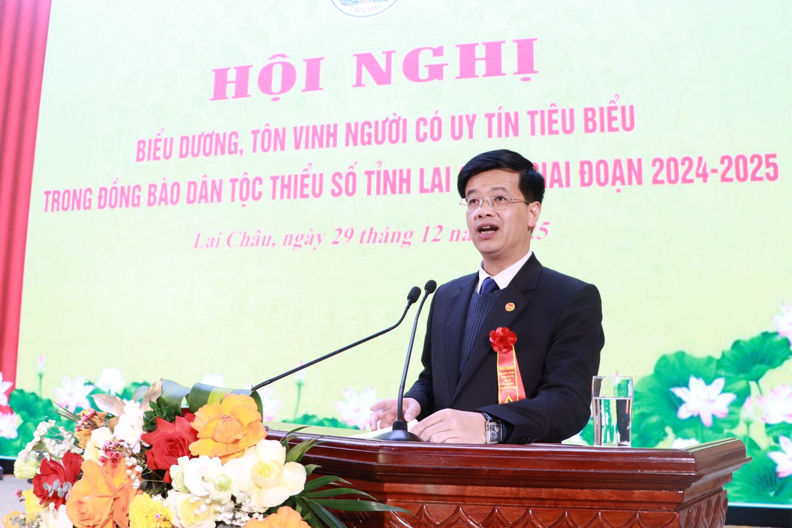 Phát biểu tại Hội nghị, đồng chí Giàng A Tính, Ủy viên Ban Thường vụ Tỉnh ủy, Phó Chủ tịch UBND tỉnh nhấn mạnh: Thời gian qua, đội ngũ người có uy tín đã phát huy tốt vai trò nòng cốt, là cầu nối tin cậy giữa cấp ủy, chính quyền với đồng bào. Thay mặt lãnh đạo tỉnh, đồng chí đã ghi nhận, biểu dương những đóng góp to lớn của đội ngũ người có uy tín đối với sự nghiệp phát triển kinh tế - xã hội của tỉnh. Đồng thời, đề nghị cấp ủy đảng, chính quyền, mặt trận Tổ quốc và các tổ chức đoàn thể cần tập trung thực hiện tốt một số nhiệm vụ sau: Tập trung triển khai toàn diện nhiệm vụ phát triển kinh tế - xã hội, xóa đói giảm nghèo, nâng cao đời sống vật chất và tinh thần đồng bào dân tộc thiểu số. Phát động và triển khai sâu rộng các phong trào thi đua yêu nước, phát huy vai trò của người có uy tín trong tuyên truyền, vận động, tập hợp, đoàn kết đồng bào các dân tộc thiểu số tích cực tham gia thực hiện các chương trình, dự án phát triển kinh tế - xã hội, xây dựng Đảng. Tăng cường công tác bồi dưỡng, nâng cao kiến thức, kỹ năng cho đội ngũ những người có uy tín. Quan tâm hơn nữa đến lực lượng người có uy tín, trẻ hóa đội ngũ người có uy tín, phát hiện những nhân tố trẻ, tích cực, có nhiệt huyết, có sự đổi mới tư duy trong sản xuất, kinh doanh, sáng tạo khởi nghiệp. Sở Dân tộc và Tôn giáo chủ trì, phối hợp với các đơn vị liên quan tổ chức các Hội nghị định kỳ hoặc đột xuất để gặp mặt những người có uy tín tiêu biểu; tạo điều kiện cho người có uy tín phản ánh những tâm tư, nguyện vọng chính đáng của Nhân dân...