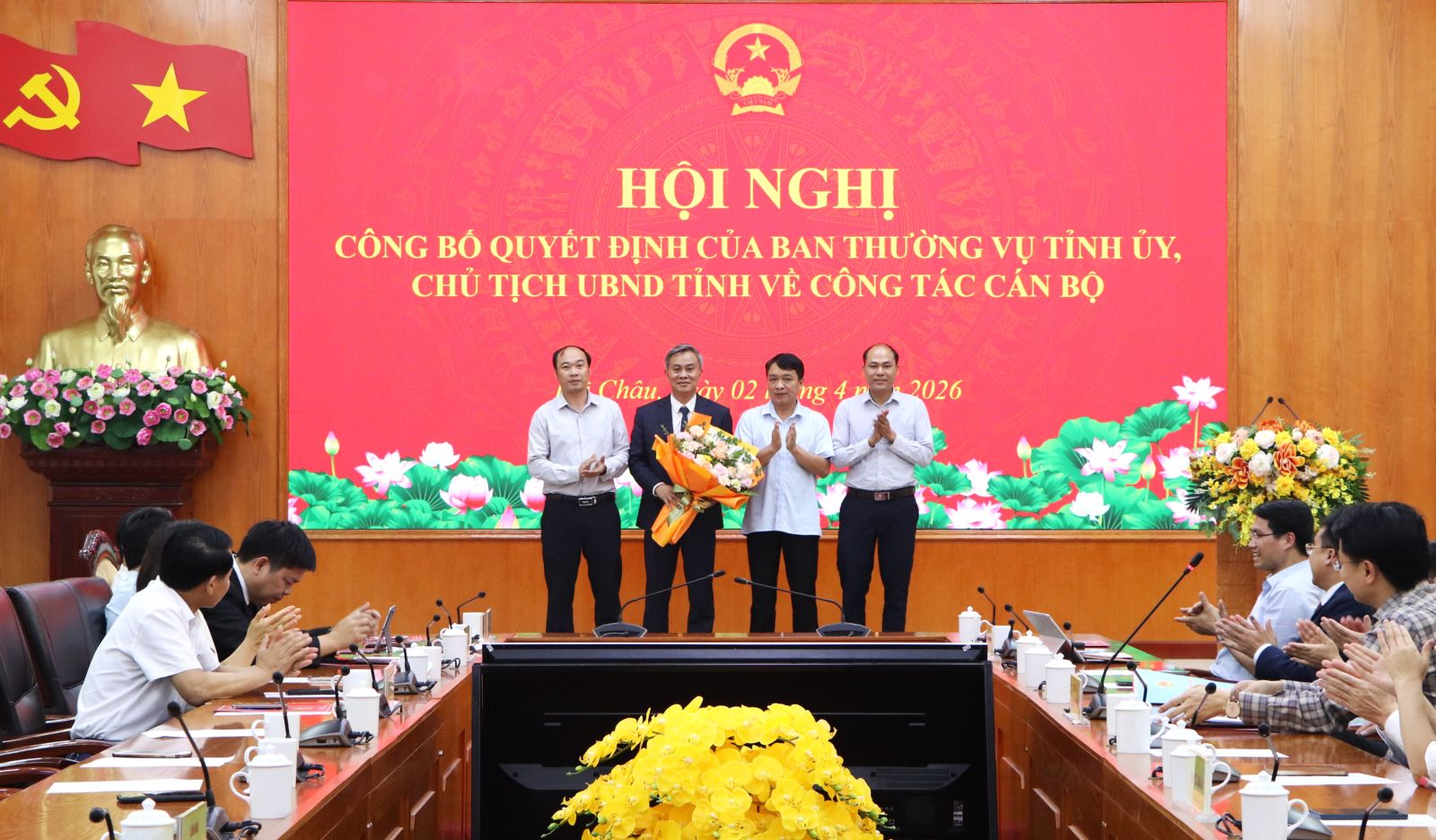 Cũng tại Hội nghị, lãnh đạo Sở Nội vụ đã công bố các Quyết định của Chủ tịch UBND tỉnh gồm: Số 479/QĐ-UBND ngày 25/3/2026 về việc tiếp nhận ông Lò Văn Hương, Phó Bí thư Đảng ủy UBND tỉnh đến nhận nhiệm vụ tại Sở Nội vụ, bổ nhiệm giữ chức vụ Giám đốc Sở Nội vụ, thời hạn bổ nhiệm là 05 năm, kể từ ngày 26/3/2026; số 538/QĐ-UBND ngày 31/3/2026 về việc Điều động, bổ nhiệm ông Trần Quốc Khanh, Chánh Thanh tra tỉnh giữ chức vụ Giám đốc Sở Tư pháp, thời hạn bổ nhiệm là 05 năm, kể từ ngày 01/4/2026; số 558/QĐ-UBND ngày 31/3/2026 về việc Điều động, bổ nhiệm ông Lê Tuấn Anh, Giám đốc Sở Tài chính giữ chức vụ Chánh Thanh tra tỉnh, thời hạn bổ nhiệm là 05 năm, kể từ ngày 01/4/2026; số 568/QĐ-UBND ngày 31/3/2026 về việc Điều động, bổ nhiệm ông Phạm Hồng Trường, Chánh Văn phòng UBND tỉnh giữ chức vụ Giám đốc Sở Tài chính, thời hạn bổ nhiệm là 05 năm, kể từ ngày 01/4/2026.