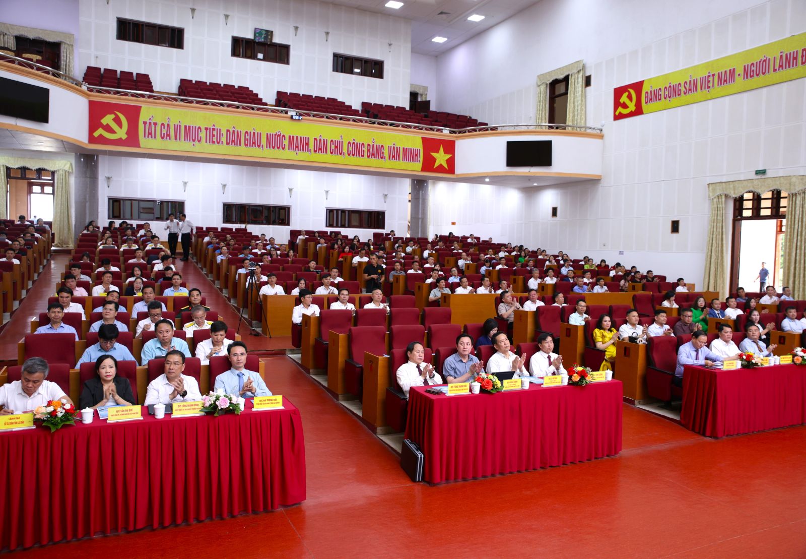 Dự Hội nghị có các đồng chí: Lê Minh Ngân - Bí thư Tỉnh ủy; Sùng A Hồ - Phó Bí thư Thường trực Tỉnh ủy, Chủ tịch UB MTTQ Việt Nam tỉnh; Lê Văn Lương - Phó Bí thư Tỉnh ủy, Chủ tịch UBND tỉnh; Tống Thanh Hải - Ủy viên Ban Thường vụ Tỉnh ủy, Phó Chủ tịch Thường trực UBND tỉnh; Giàng A Tính - Ủy viên Ban Thường vụ Tỉnh ủy, Phó Chủ tịch UBND tỉnh; Hà Trọng Hải - Tỉnh uỷ viên, Phó Chủ tịch UBND tỉnh; cùng các đồng chí trong Ban Thường vụ Tỉnh ủy, Thường trực HĐND, UBND tỉnh; đại diện các sở, ban, ngành, địa phương và các doanh nhân, doanh nghiệp tiêu biểu trên địa bàn tỉnh.