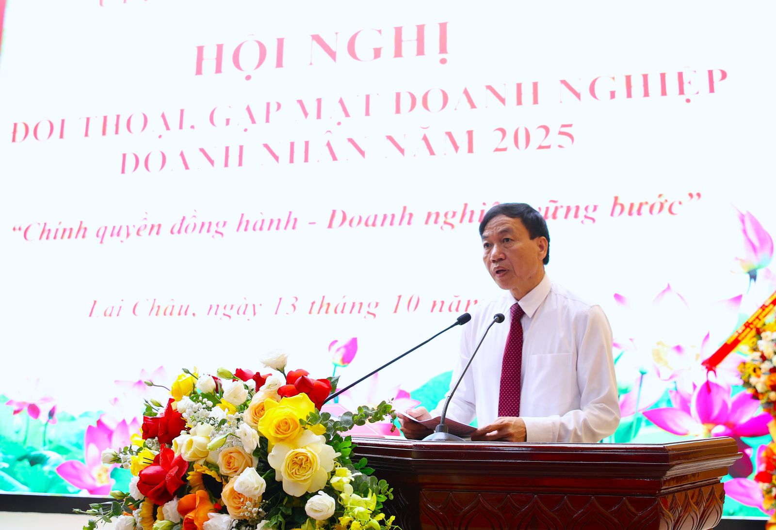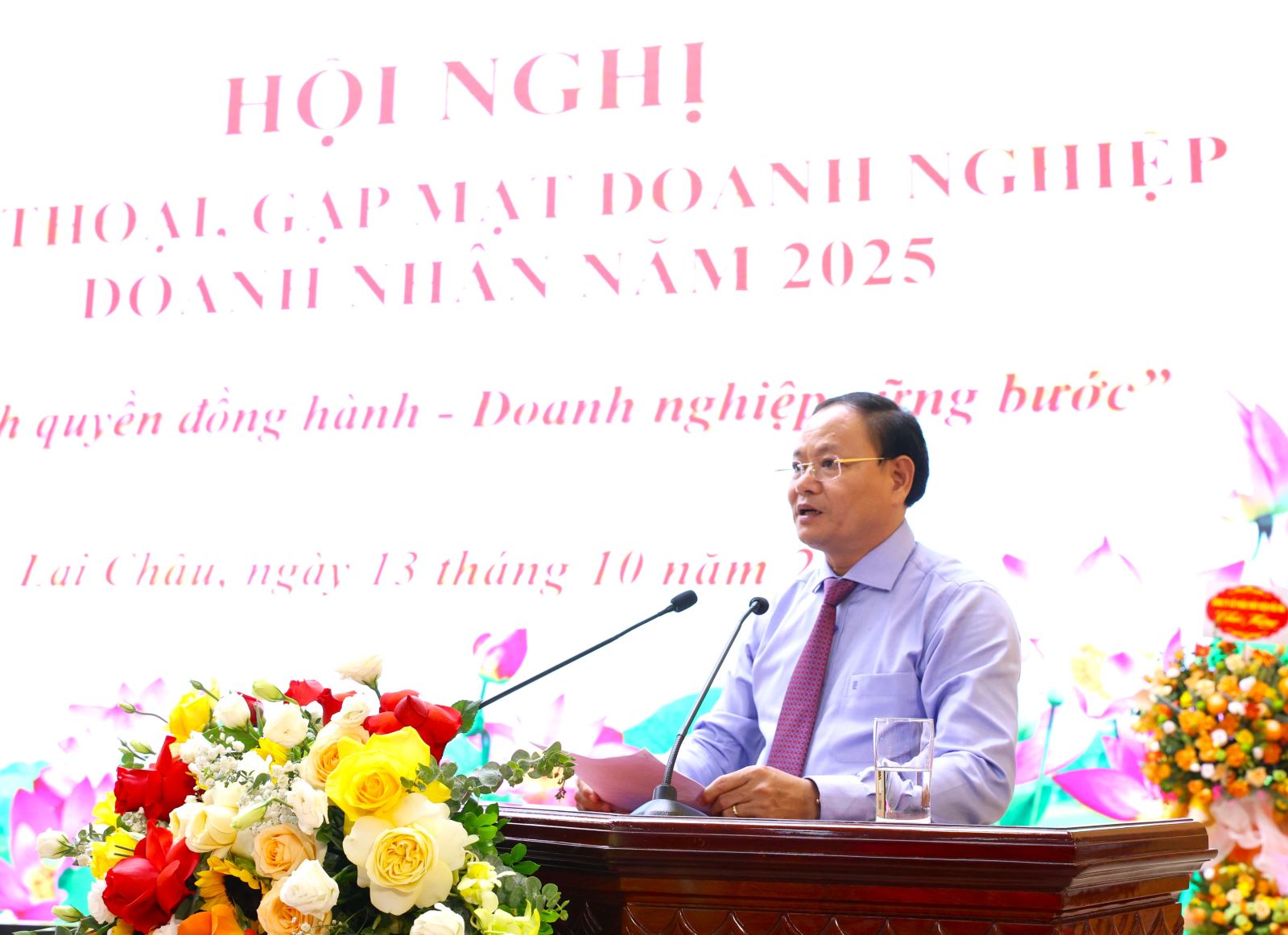 Phát biểu khai mạc Hội nghị, Chủ tịch UBND tỉnh Lê Văn Lương khẳng định: Cộng đồng doanh nghiệp, doanh nhân Lai Châu đã không ngừng trưởng thành. Đến nay, toàn tỉnh có trên 2.700 Doanh nghiệp và Hợp tác xã với tổng vốn đăng ký kinh doanh gần 66 nghìn tỷ đồng, hoạt động ở hầu hết các lĩnh vực. Góp phần quan trọng vào phát triển và ổn định kinh tế - xã hội, giải quyết việc làm và thu nhập cho người lao động, đóng góp ngân sách Nhà nước và thực hiện các chính sách an sinh xã hội của tỉnh. Chủ tịch UBND tỉnh trân trọng ghi nhận, tri ân tới đội ngũ doanh nhân tỉnh Lai Châu, những người đã và đang cống hiến với tâm huyết, trách nhiệm và nghĩa cử cao đẹp vì một Lai Châu phát triển xanh, nhanh và bền vững.