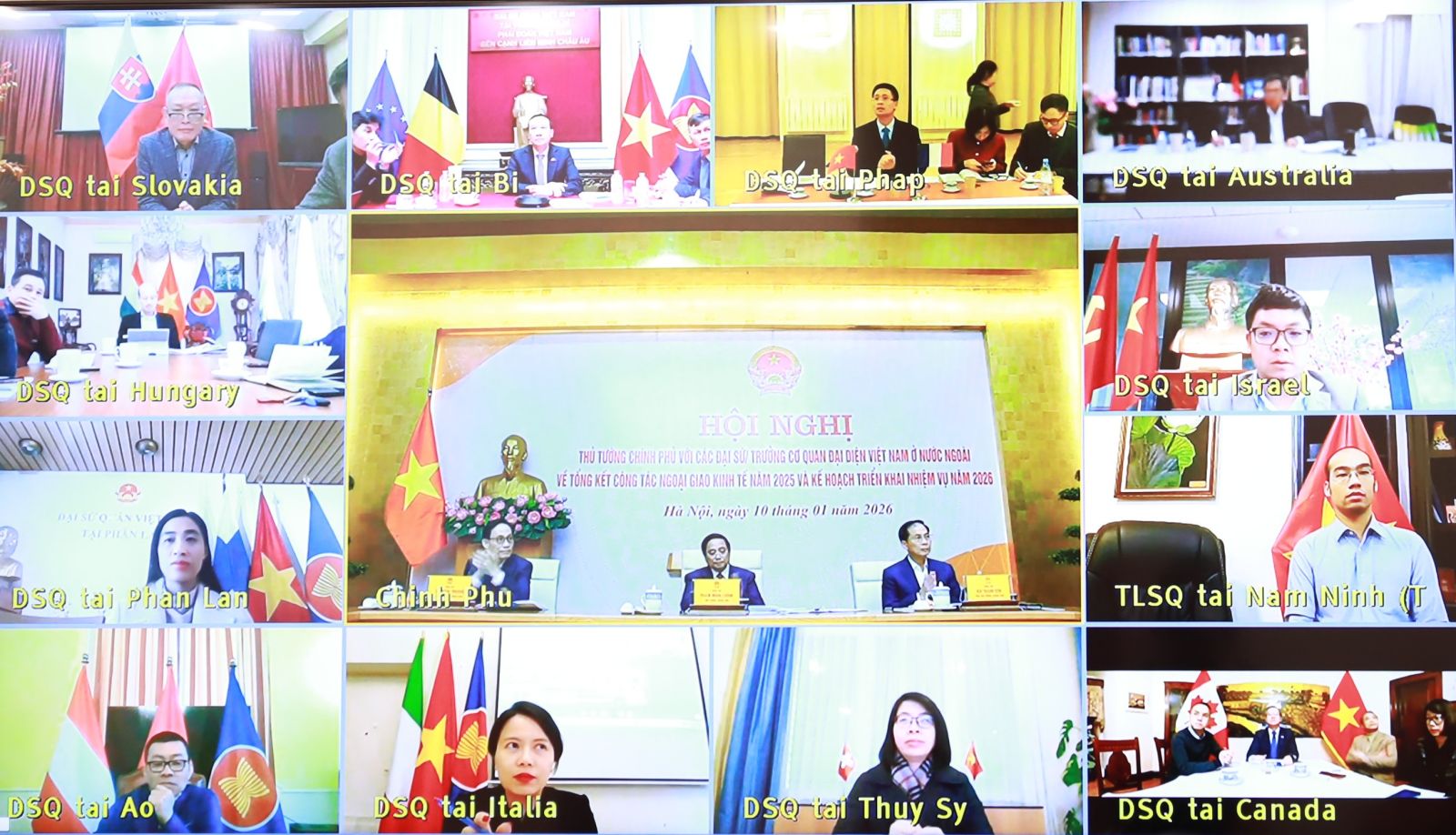 Tối nay (10/1), Thủ tướng Chính phủ Phạm Minh Chính chủ trì Hội nghị với các Đại sứ/Trưởng Cơ quan đại diện Việt Nam ở nước ngoài nhằm tổng kết công tác ngoại giao kinh tế năm 2025 và triển khai nhiệm vụ năm 2026. Hội nghị được tổ chức theo hình thức trực tiếp kết hợp trực tuyến toàn quốc và các đại sứ quán ở nước ngoài.