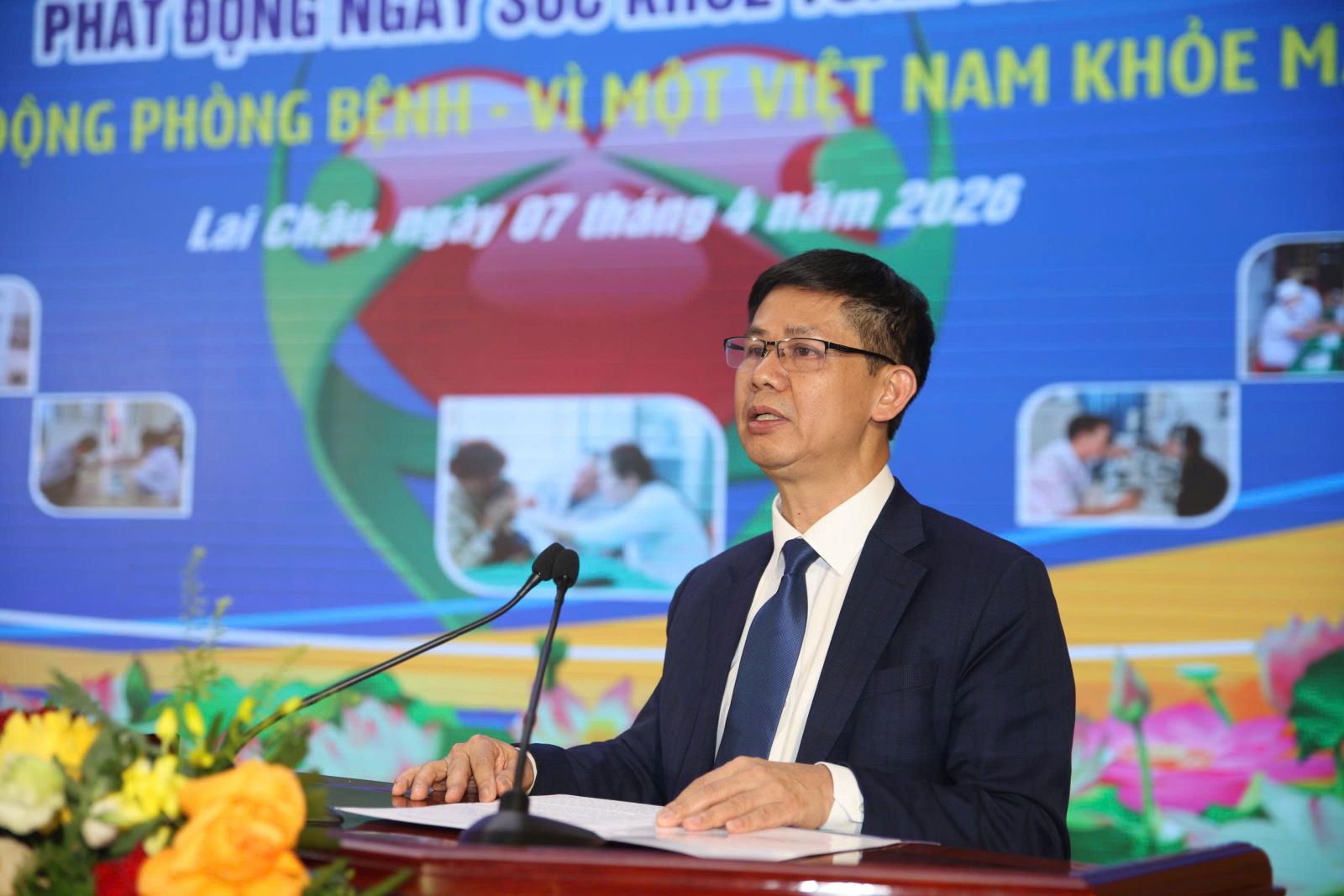 Phát biểu chỉ đạo tại Lễ mít tinh, đồng chí Tống Thanh Hải - Phó Chủ tịch Thường trực UBND tỉnh khẳng định Đảng và Nhà nước luôn xác định sức khỏe Nhân dân là nền tảng cho sự phát triển bền vững của đất nước. Đồng chí đề nghị các cấp, các ngành tập trung nâng cao nhận thức, biến chủ động phòng bệnh thành ý thức tự giác và nếp sống văn minh của mỗi người dân. Phó Chủ tịch Thường trực UBND tỉnh yêu cầu tập trung phát triển y tế dự phòng và y tế cơ sở; đồng thời đẩy mạnh chuyển đổi số, ứng dụng trí tuệ nhân tạo và triển khai hiệu quả hồ sơ sức khỏe điện tử để nâng cao chất lượng quản lý sức khỏe toàn dân. Đồng chí tin tưởng rằng với sự vào cuộc quyết liệt của hệ thống chính trị, sức khỏe toàn dân sẽ trở thành phong trào sâu rộng, góp phần xây dựng con người Lai Châu phát triển toàn diện.
