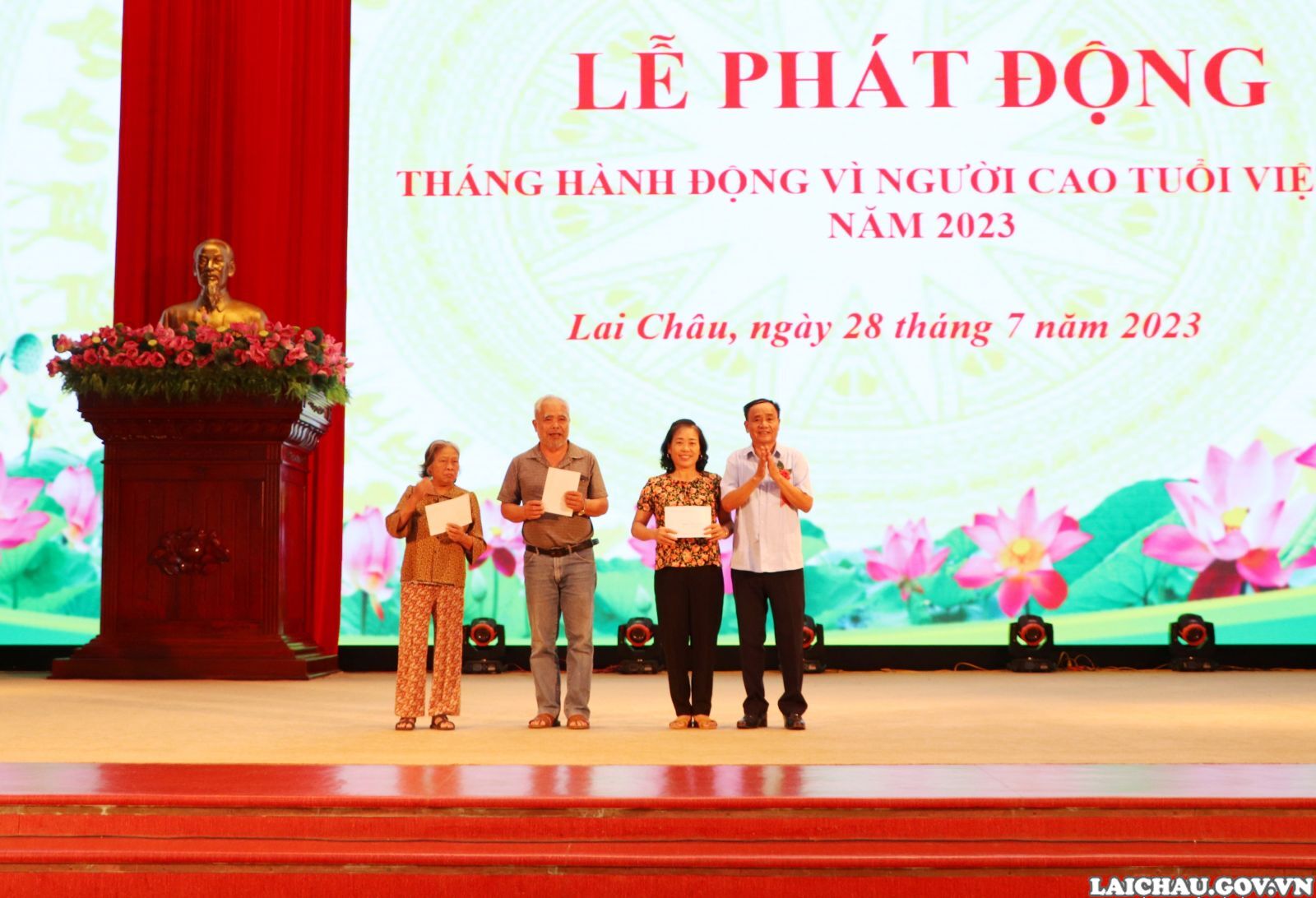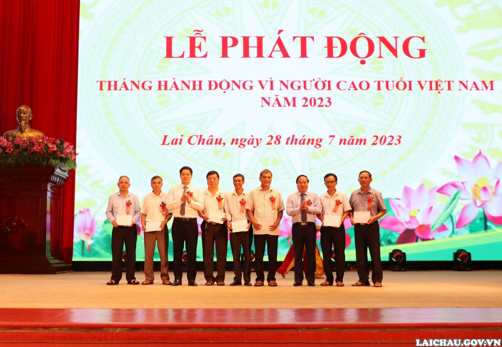 Sáng nay (28/7), Ban Công tác người cao tuổi tỉnh Lai Châu phối hợp với Hội người cao tuổi tỉnh Lai Châu tổ chức Lễ phát động Tháng hành động vì người cao tuổi Việt Nam năm 2023. Các đồng chí: Vũ Mạnh Hà - Ủy viên Dự khuyết Ban Chấp hành Trung ương Đảng, Phó Bí thư Tỉnh ủy; Tống Thanh Hải - Phó Chủ tịch Thường trực UBND tỉnh, Trưởng Ban Công tác người cao tuổi tỉnh dự buổi Lễ.