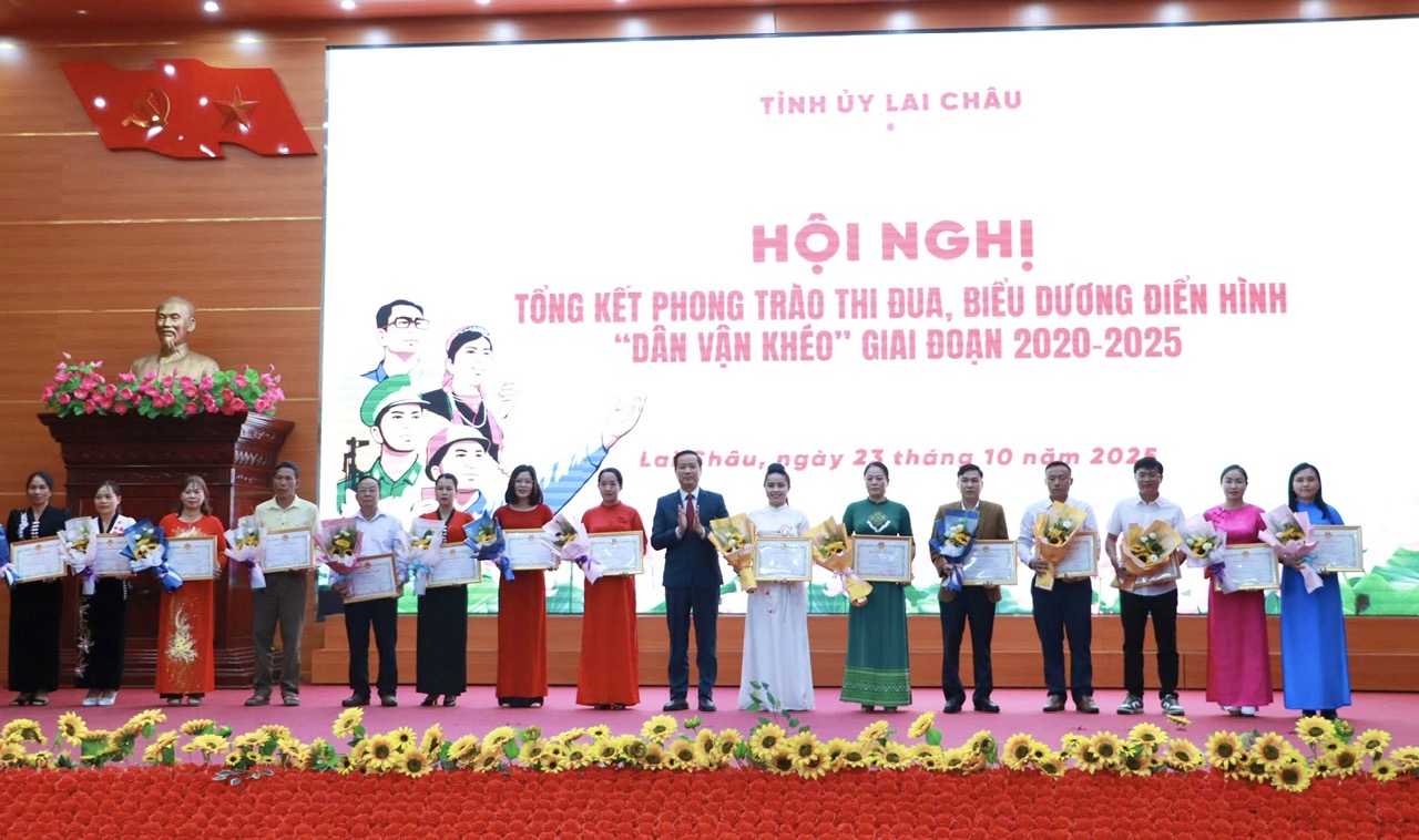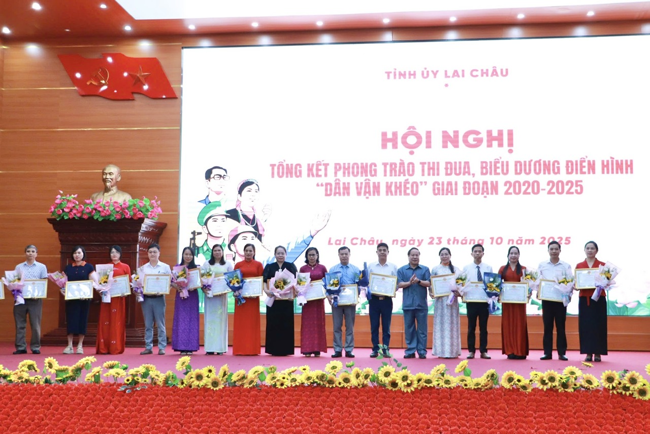 Nhân dịp này, Chủ tịch UBND tỉnh Lai Châu tặng Bằng khen cho 12 tập thể, 37 cá nhân có thành tích xuất sắc trong thực hiện phong trào thi đua “Dân vận khéo” giai đoạn 2020 - 2025.