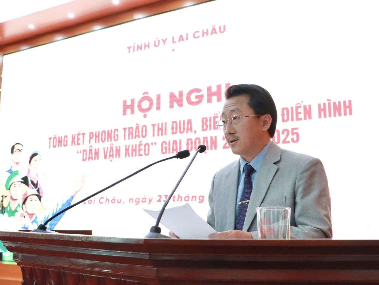 Chiều nay (23/10), Tỉnh ủy Lai Châu tổ chức Hội nghị tổng kết phong trào thi đua, biểu dương điển hình “Dân vận khéo” giai đoạn 2020 - 2025. Đồng chí Sùng A Hồ - Phó Bí thư Thường trực Tỉnh ủy, Chủ tịch Ủy ban Mặt trận Tổ quốc Việt Nam tỉnh dự và phát biểu chỉ đạo tại Hội nghị.