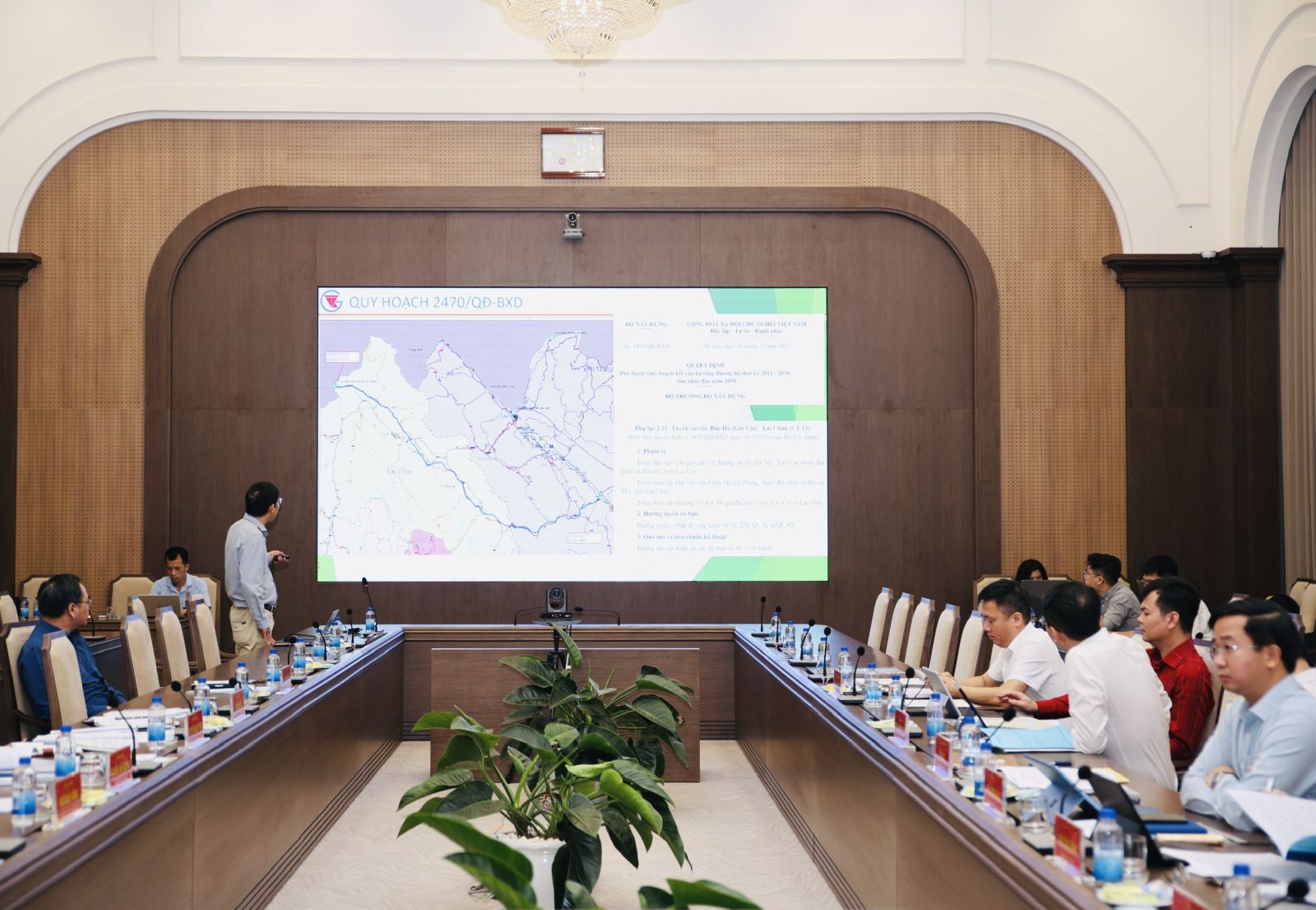Tại buổi làm việc, các đồng chí tham dự đã nghe đơn vị tư vấn báo cáo nghiên cứu đầu tư Dự án xây dựng đường cao tốc Bảo Hà - Lai Châu. Theo đó, Dự án có điểm đầu giao cao tốc Hà Nội - Lào Cai (IC.16), xã Bảo Hà, tỉnh Lào Cai; điểm cuối tại Cửa khẩu Ma Lù Thàng, xã Phong Thổ, tỉnh Lai Châu; tuyến có chiều dài khoảng 163,5 km (đoạn qua địa bàn tỉnh Lào Cai dài khoảng 50 km và đoạn qua địa phận Lai Châu khoảng 113,5 km); quy mô đầu tư gồm 4 làn xe cao tốc, tốc độ thiết kế đạt 80 - 100 km/h; tổng mức đầu tư Dự án ước tính là 53.000 tỷ đồng, thực hiện trong giai đoạn 2026 - 2030.