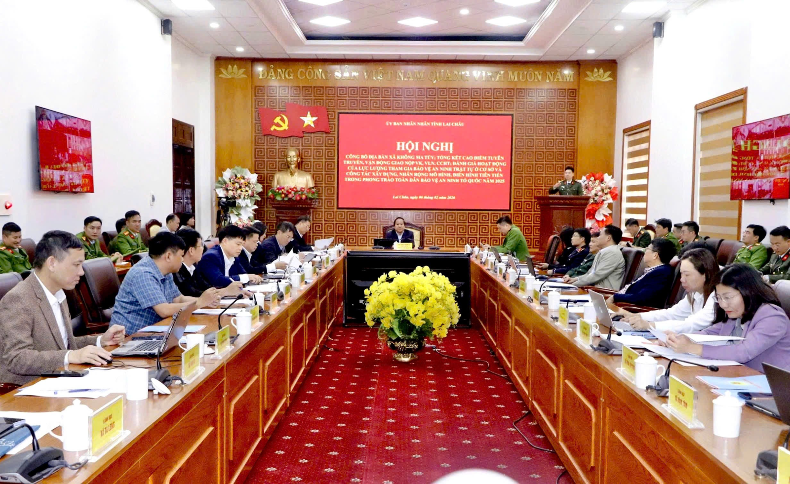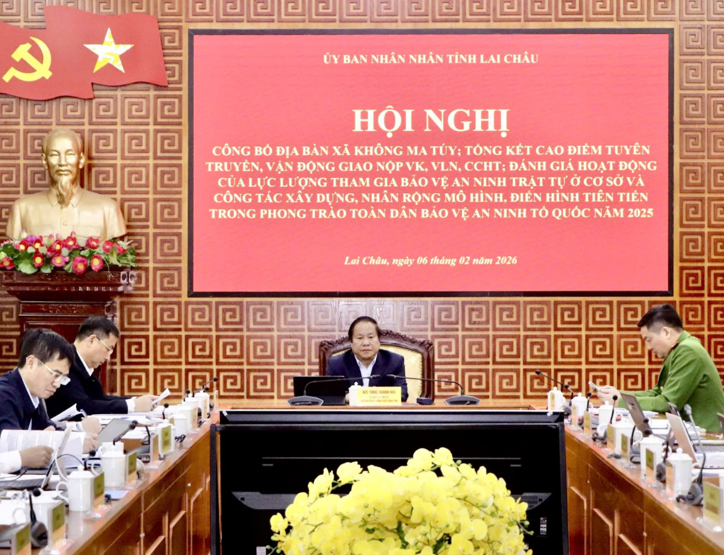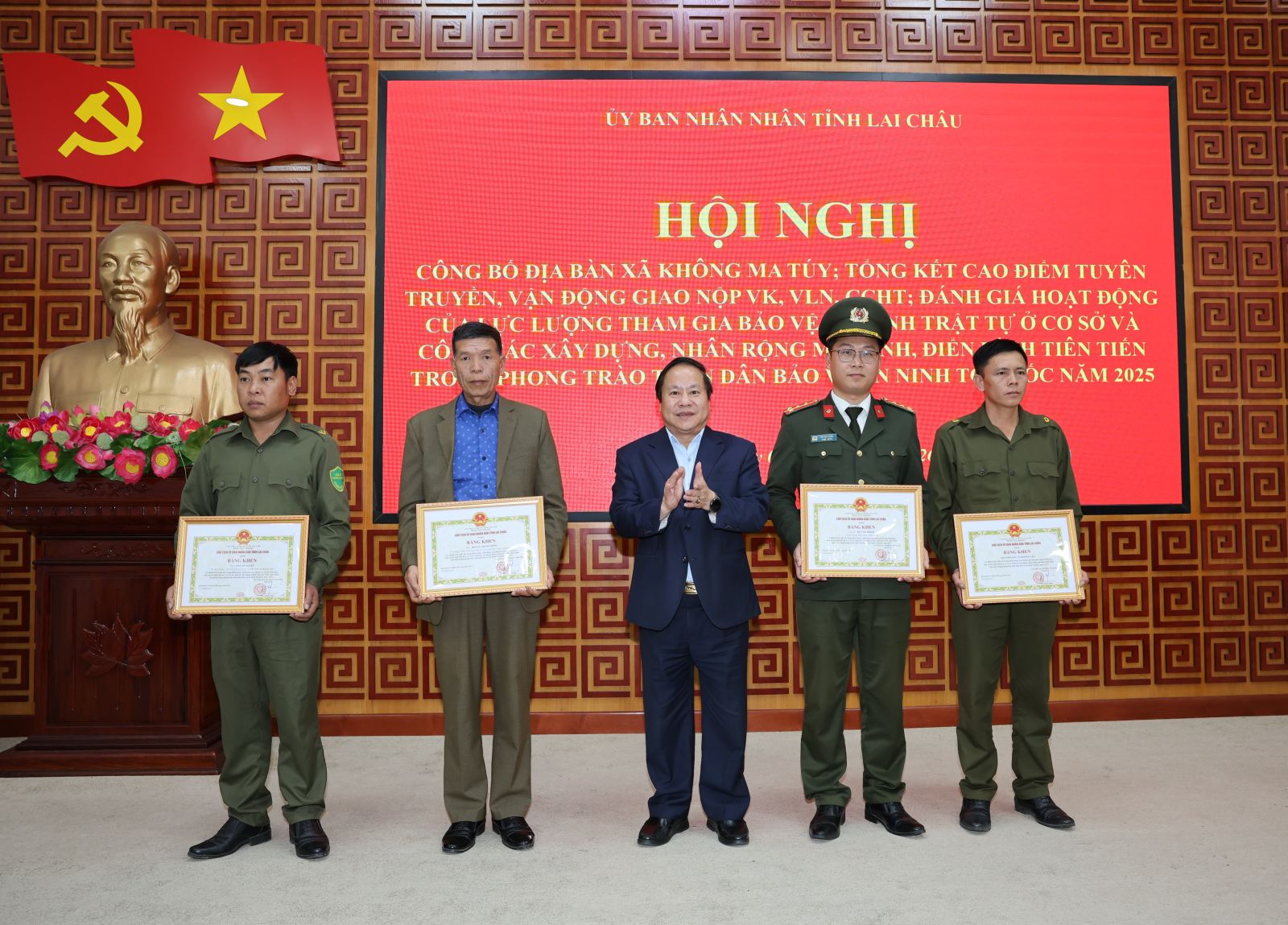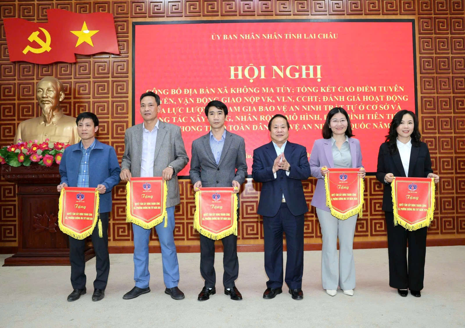Tại Hội nghị, đã công bố Quyết định số 2918/QĐ-UBND ngày 18/11/2025 của UBND tỉnh Lai Châu phê duyệt các địa bàn cấp xã không ma túy tỉnh Lai Châu năm 2025 gồm 11 xã: Nậm Mạ, Pa Tần, Hồng Thu, Tủa Sín Chải, Khun Há, Tả Lèng, Nậm Sỏ, Mù Cả, Nậm Tăm, Lê Lợi, Mường Mô.