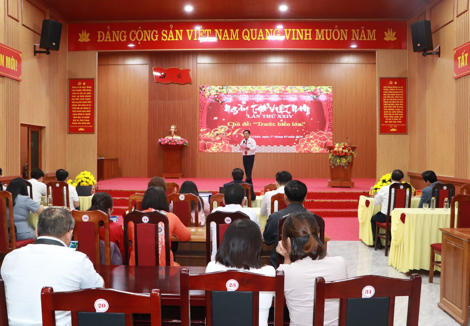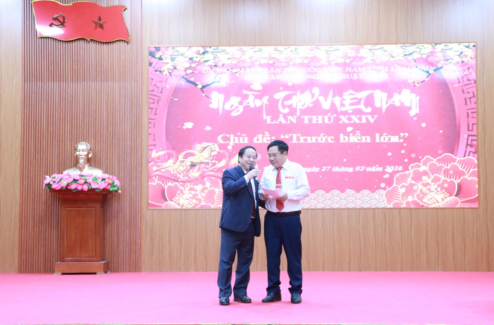 Chiều nay (27/2), tại xã Lê Lợi, Hội Văn học nghệ thuật tỉnh (Ủy ban MTTQ Việt Nam tỉnh Lai Châu) phối hợp cùng UBND xã Lê Lợi tổ chức Ngày thơ Việt Nam lần thứ 24 năm 2026 với chủ đề “Trước Biển lớn”. Đồng chí Tống Thanh Hải - Ủy viên Ban Thường vụ Tỉnh ủy, Phó Chủ tịch thường trực UBND tỉnh dự và chỉ đạo tại Ngày thơ.
