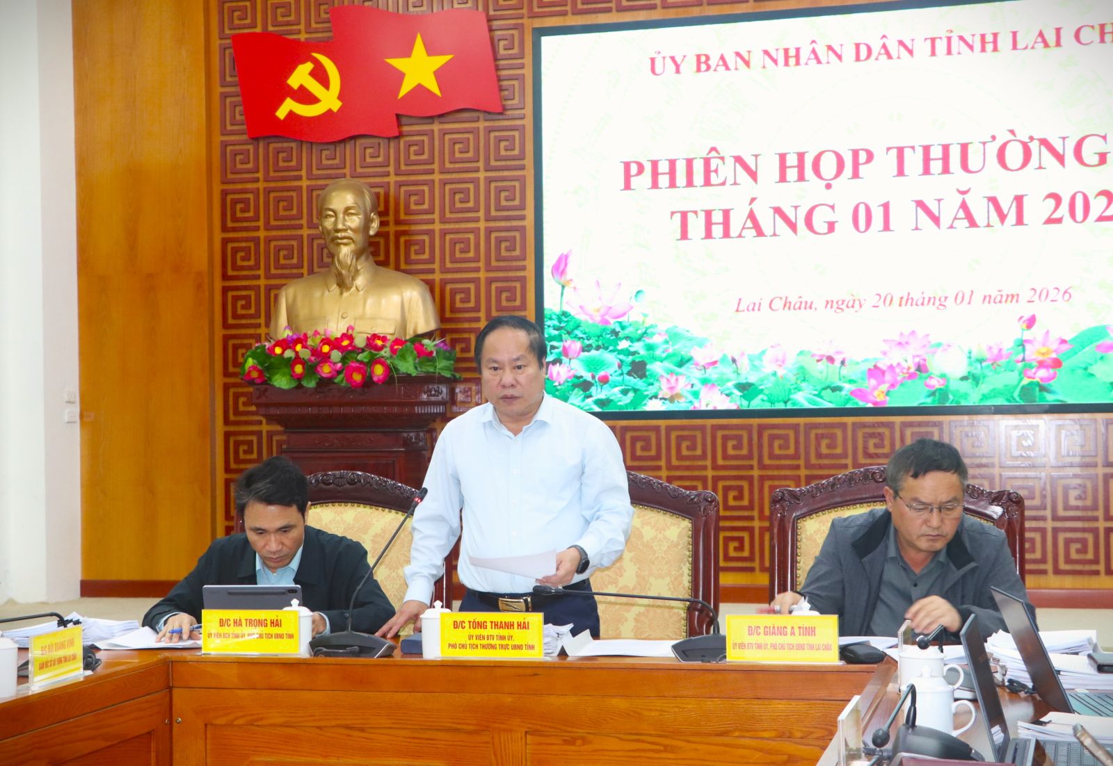 Chiều nay (20/1), UBND tỉnh tổ chức Phiên họp thường kỳ tháng 1 dưới sự chủ trì của các đồng chí: Phó Chủ tịch Thường trực UBND tỉnh Tống Thanh Hải, Phó Chủ tịch UBND tỉnh Giàng A Tính, Phó Chủ tịch UBND tỉnh Hà Trọng Hải. Phiên họp được tổ chức bằng hình thức trực tiếp tại điểm cầu tỉnh và trực tuyến đến điểm cầu các xã, phường trong toàn tỉnh.