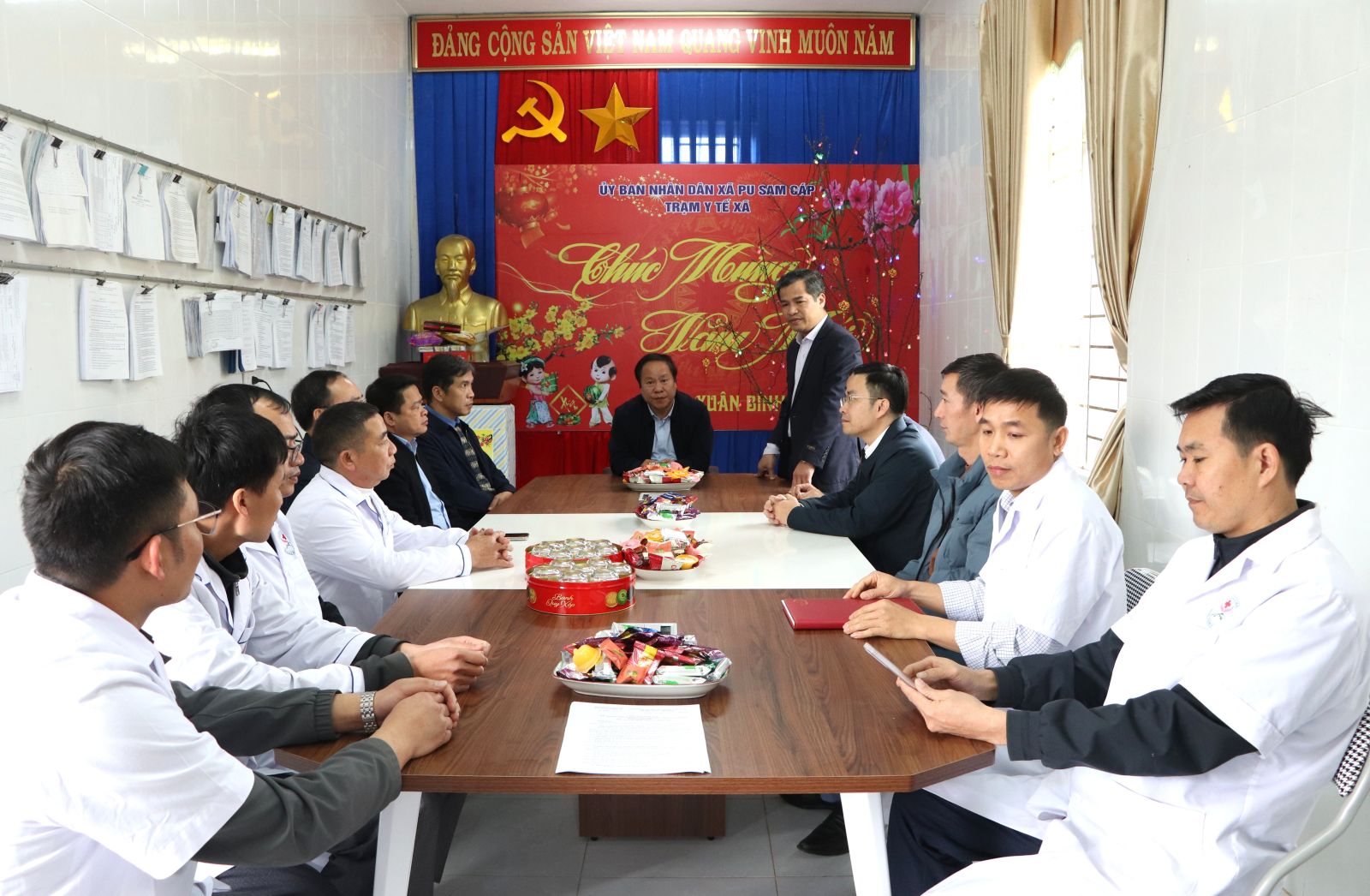 Phó Chủ tịch Thường trực UBND tỉnh Tống Thanh Hải và Đoàn công tác đã thăm, nắm tình hình, tặng quà Trạm Y tế các xã Nậm Tăm và Pu Sam Cáp.